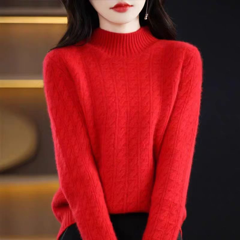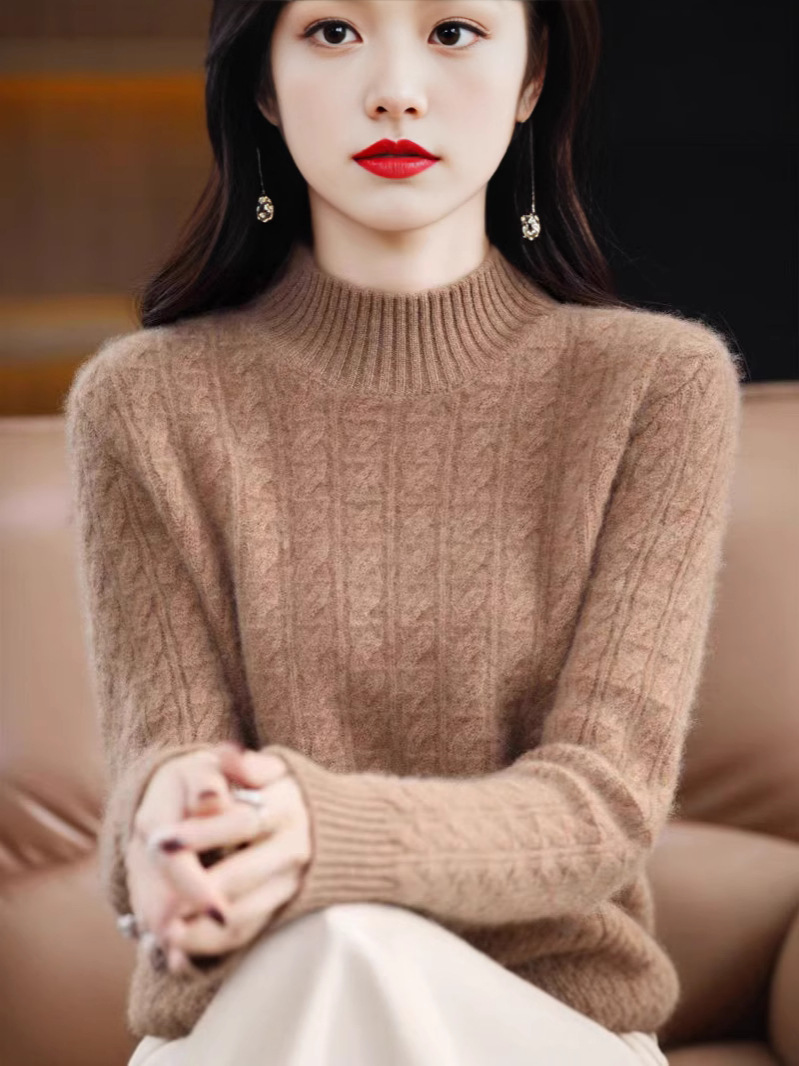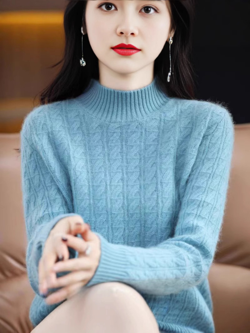 Главная страница > Кашемировый свитер женский 24 осень и зима новый пол-высокий воротник нижний свитер толстый свитер