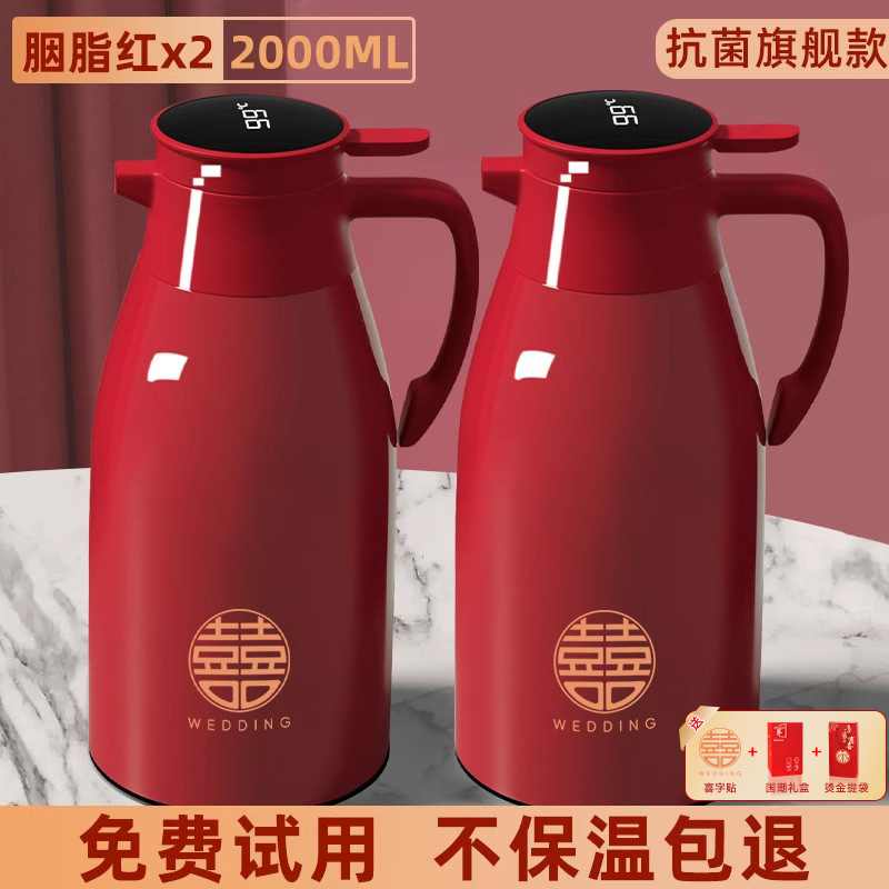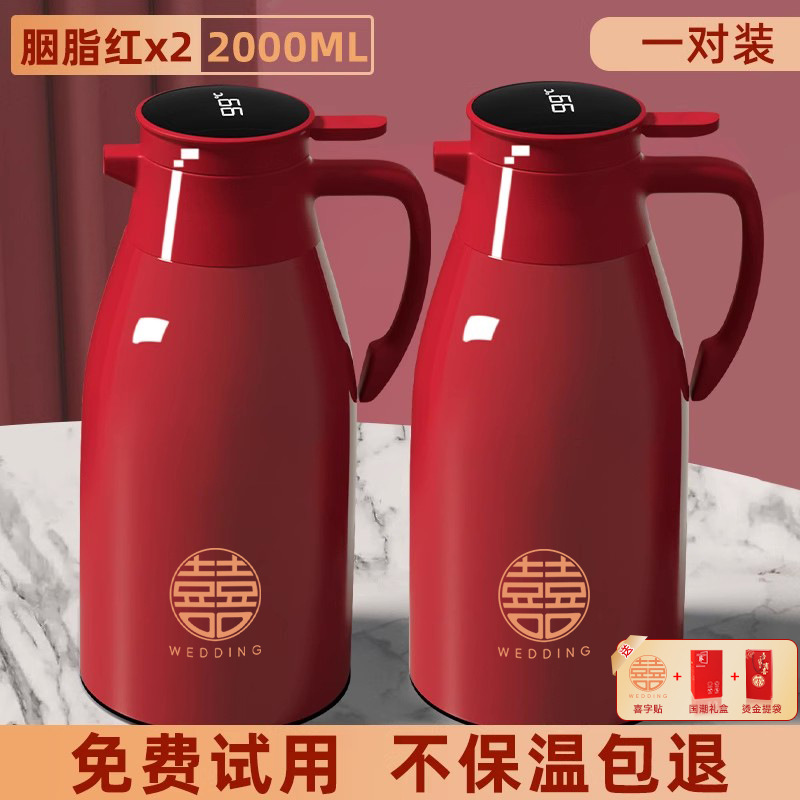 06_[Карминовый красный] пара 2,0 литра (бесплатное слово «счастливый»_2+интеллектуальный дисплей температуры+пыленепроницаемый носик)