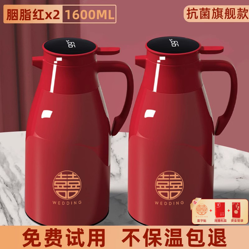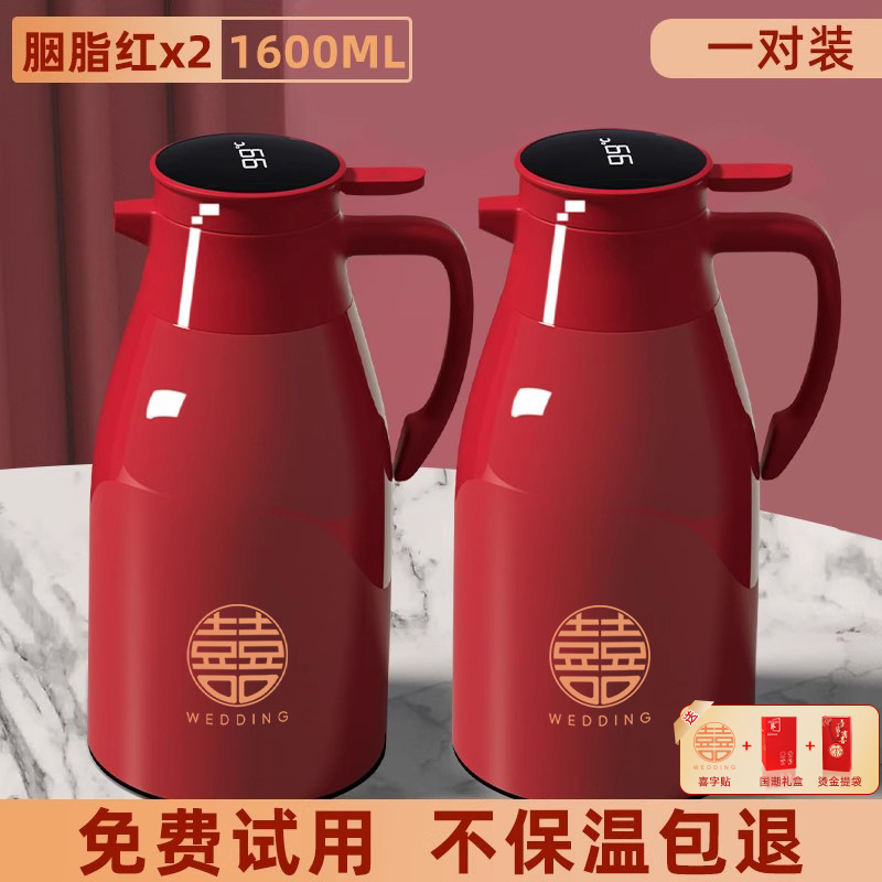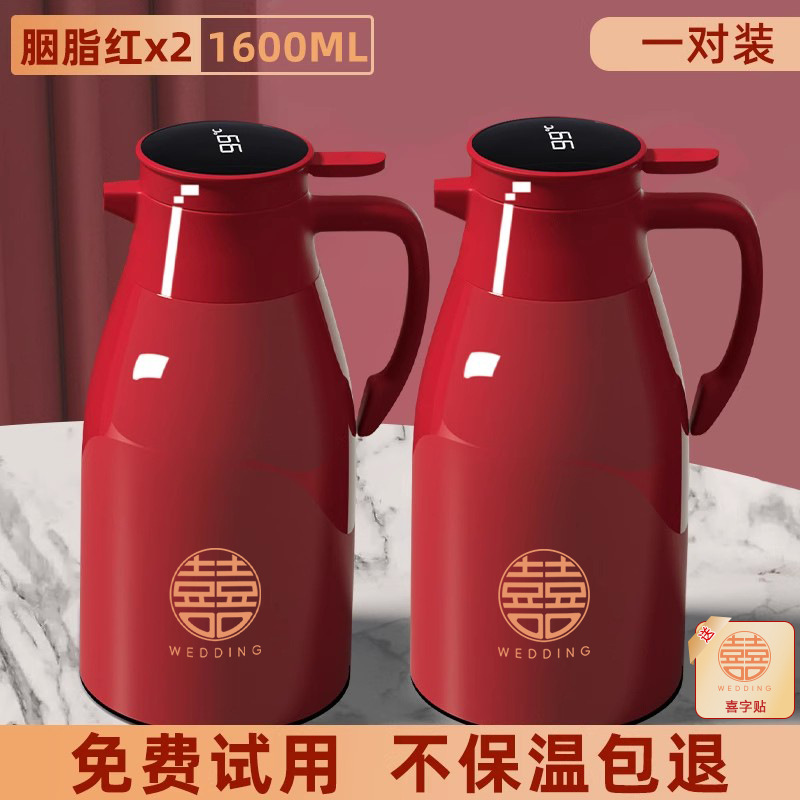 12_[Карминовый красный] пара 1,6 литра (бесплатное слово «счастливый»_2+интеллектуальный дисплей температуры+пыленепроницаемый носик)