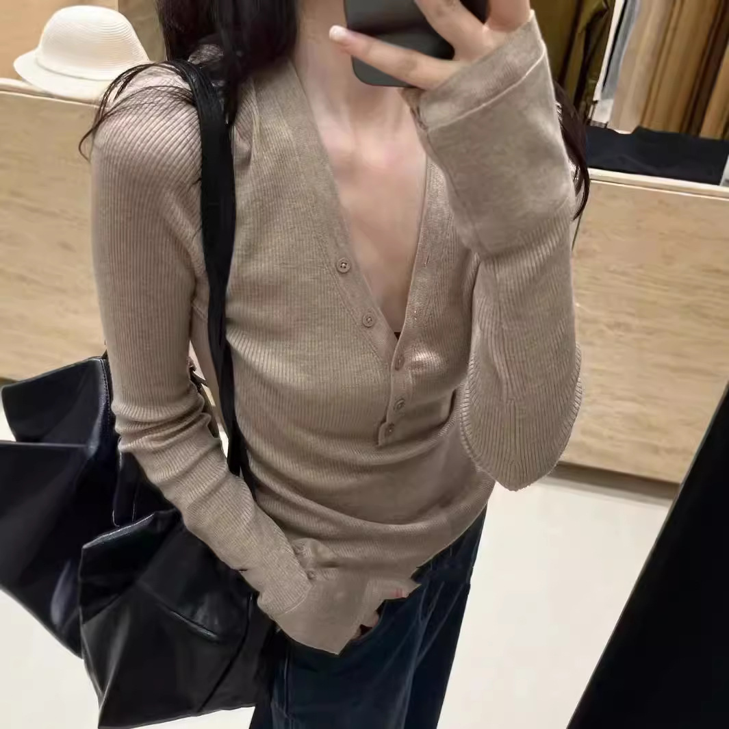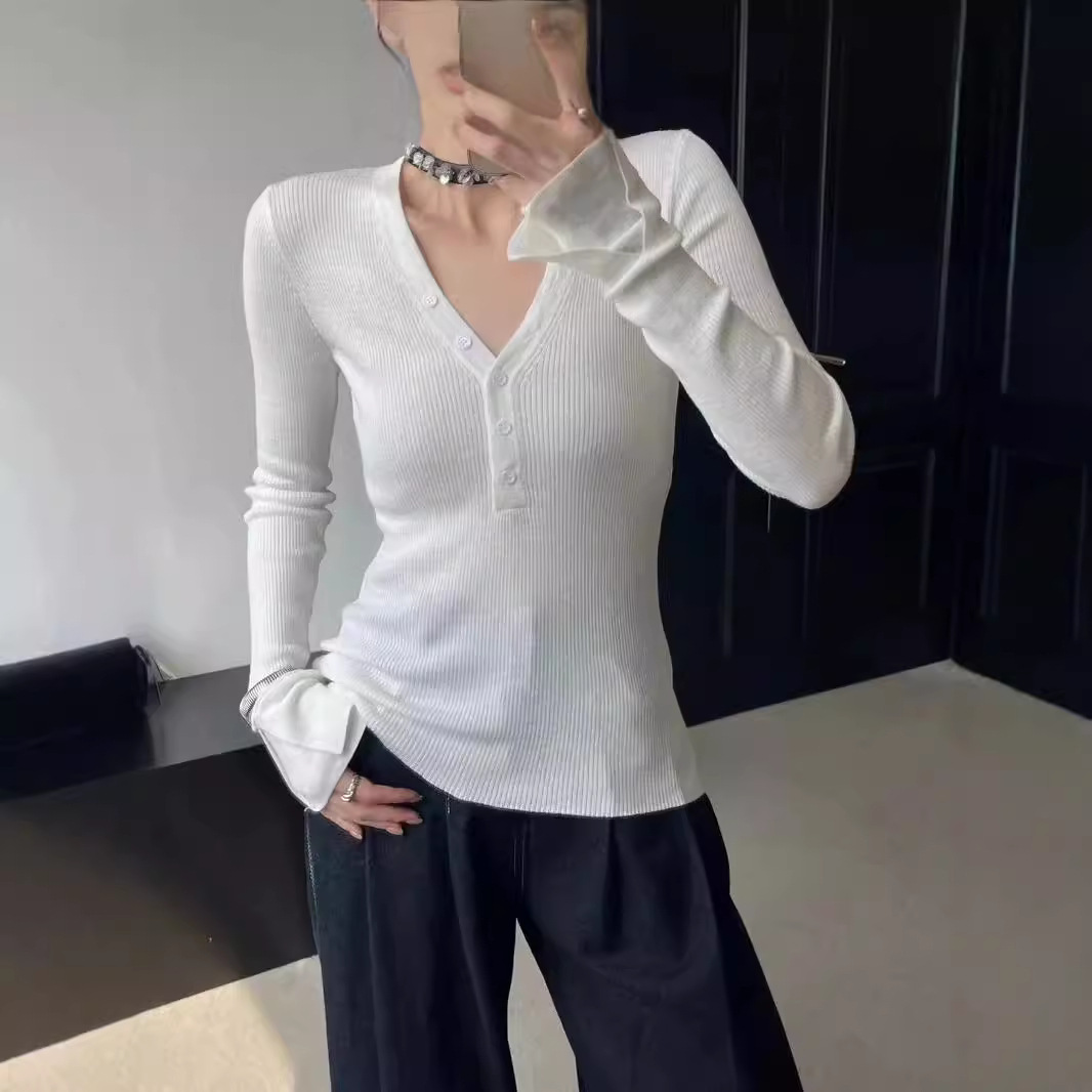 Главная страница > Женская облегающая трикотажная базовая футболка с V-образным вырезом, длинным рукавом, прямым кроем, эластичная, для коррекции фигуры, топ-бестселлер для трансграничной торговли