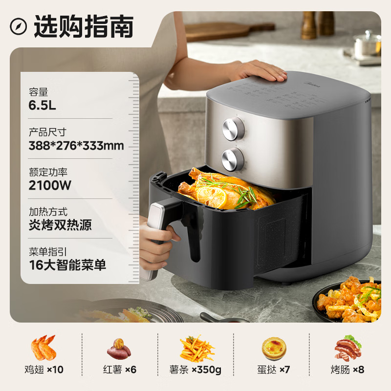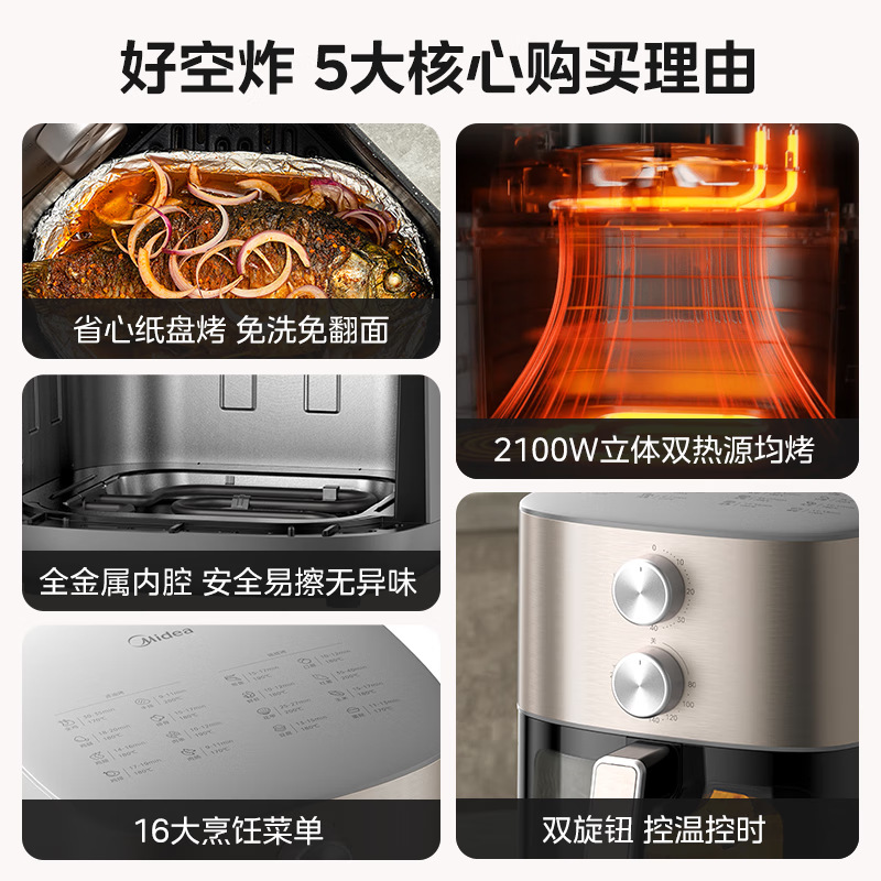 Главная страница > Аэрофритюрница Midea для домашнего использования, большая вместимость, электрическая фритюрница с окном, универсальная печь, флагманский оригинальный продукт с двойным источником нагрева.