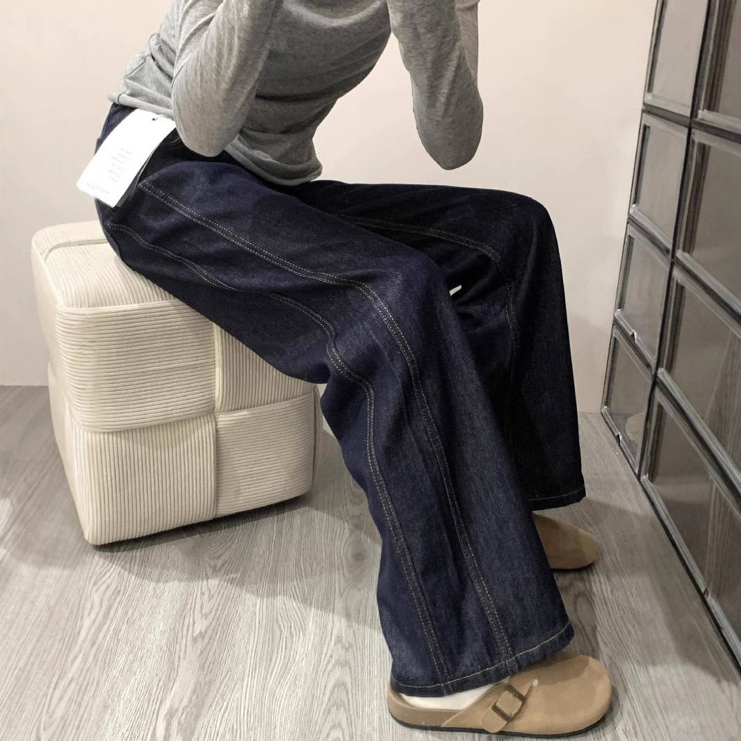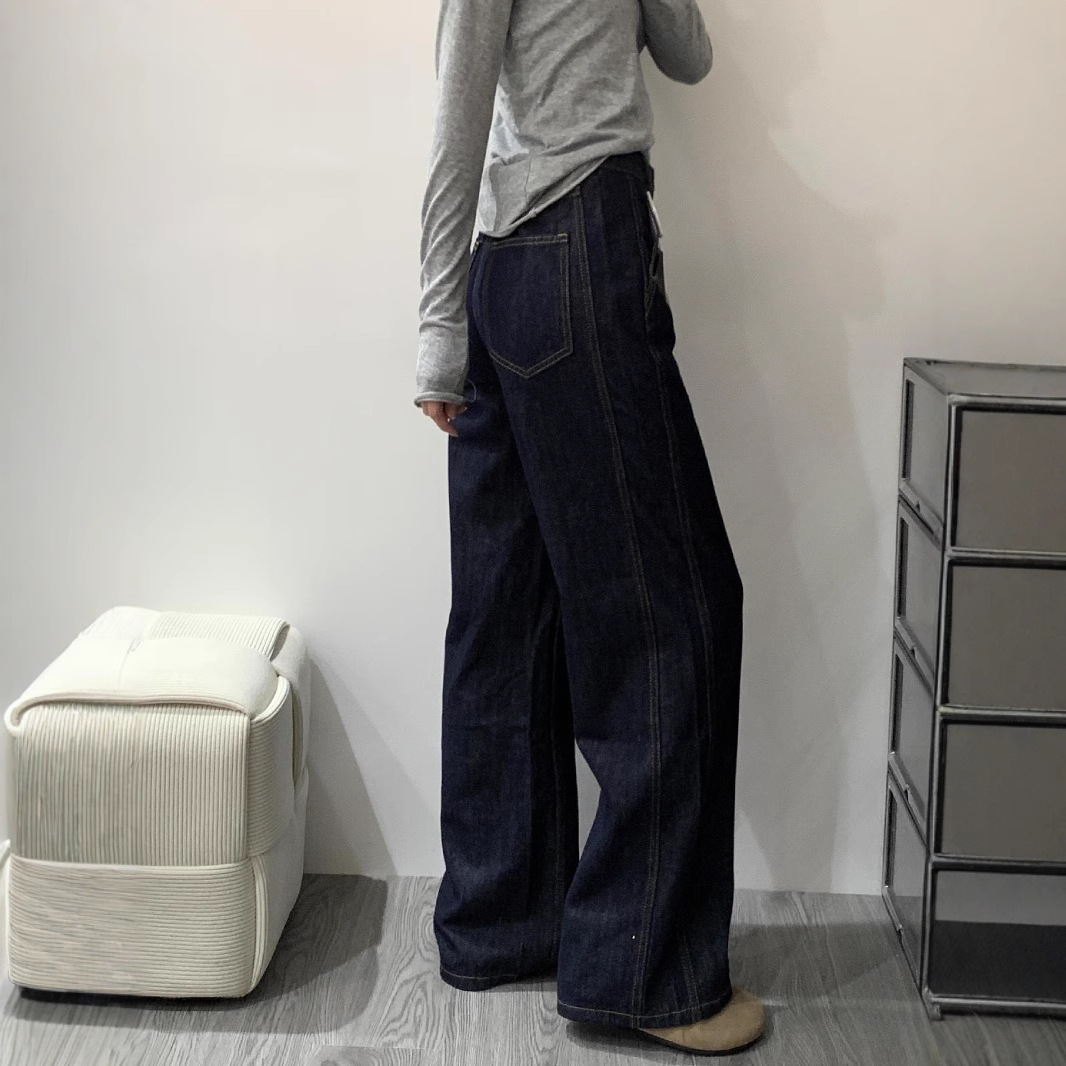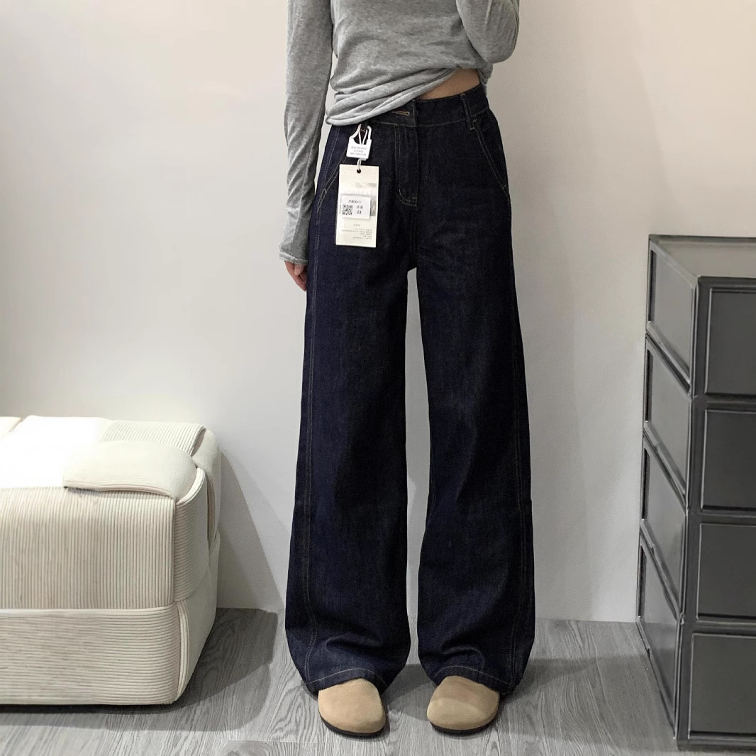 Темно-синие ретро джинсы женский весенний новый тонкий прямой размер