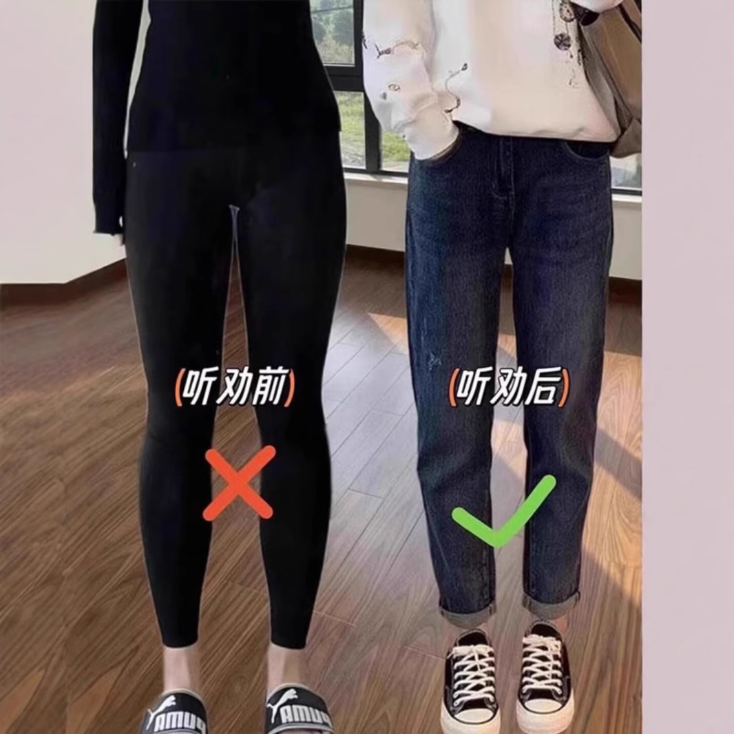 Эл-харун джинсы женский осень и зима 2024 года большой размер грушевидной фигуры плюс бархат тонкая талия