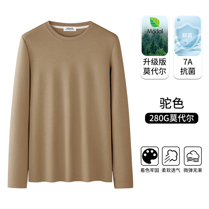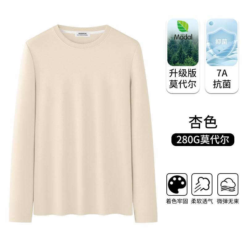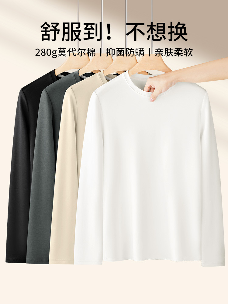280 г мерсеризованная модальная хлопковая футболка с длинным рукавом, мужская базовая одежда, весна-осень 2025, новый стиль, теплый топ