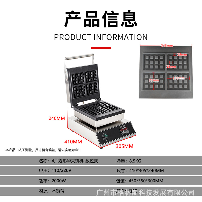 Вафельная печь с одной головкой, 4 шт., цифровой дисплей