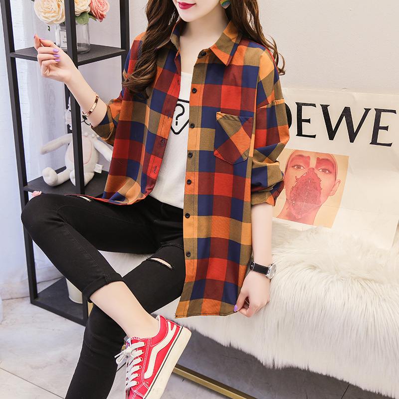 Главная страница > Студенческая клетчатая рубашка Женская длинная рукавная корейская версия свободная весна и осень 2025 новый стиль колледжа носить рубашку пальто