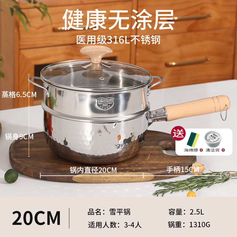 Главная страница > Пищевой утолщенный горшок Yukihira из нержавеющей стали 316, горшок для лапши быстрого приготовления, горшок для детского питания, для одного человека, бытовой антипригарный маленький молочный горшок