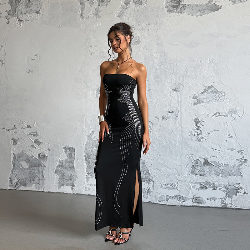 JY24390MHO Angel Крылья Тонкие Горячие Алмазные Тряпки Платья Европейские и Американские Женщины Воротные Длинные Платья Летние Новые