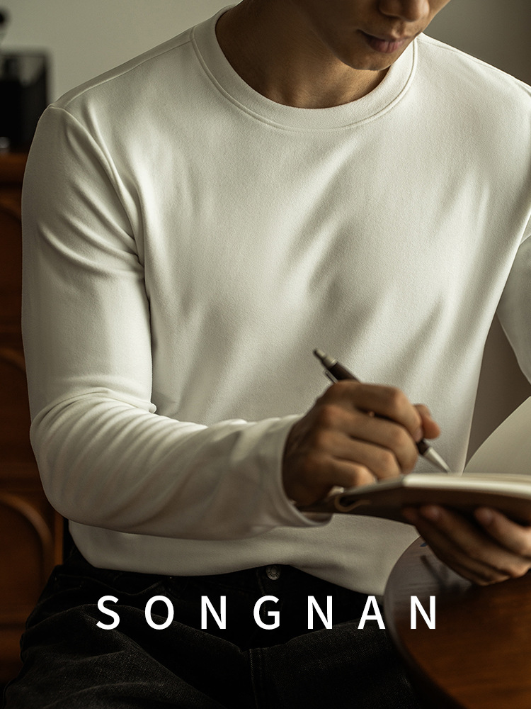 Главная страница > SONGNAN теплая нижняя рубашка для мужчин осень-зима тонкая простая двухцветная футболка с круглым вырезом с длинным рукавом