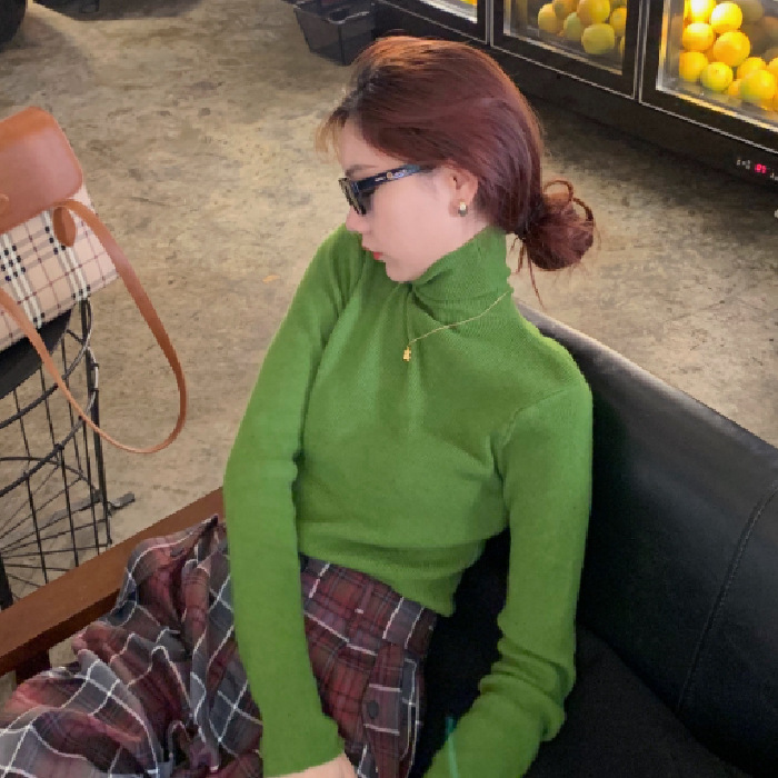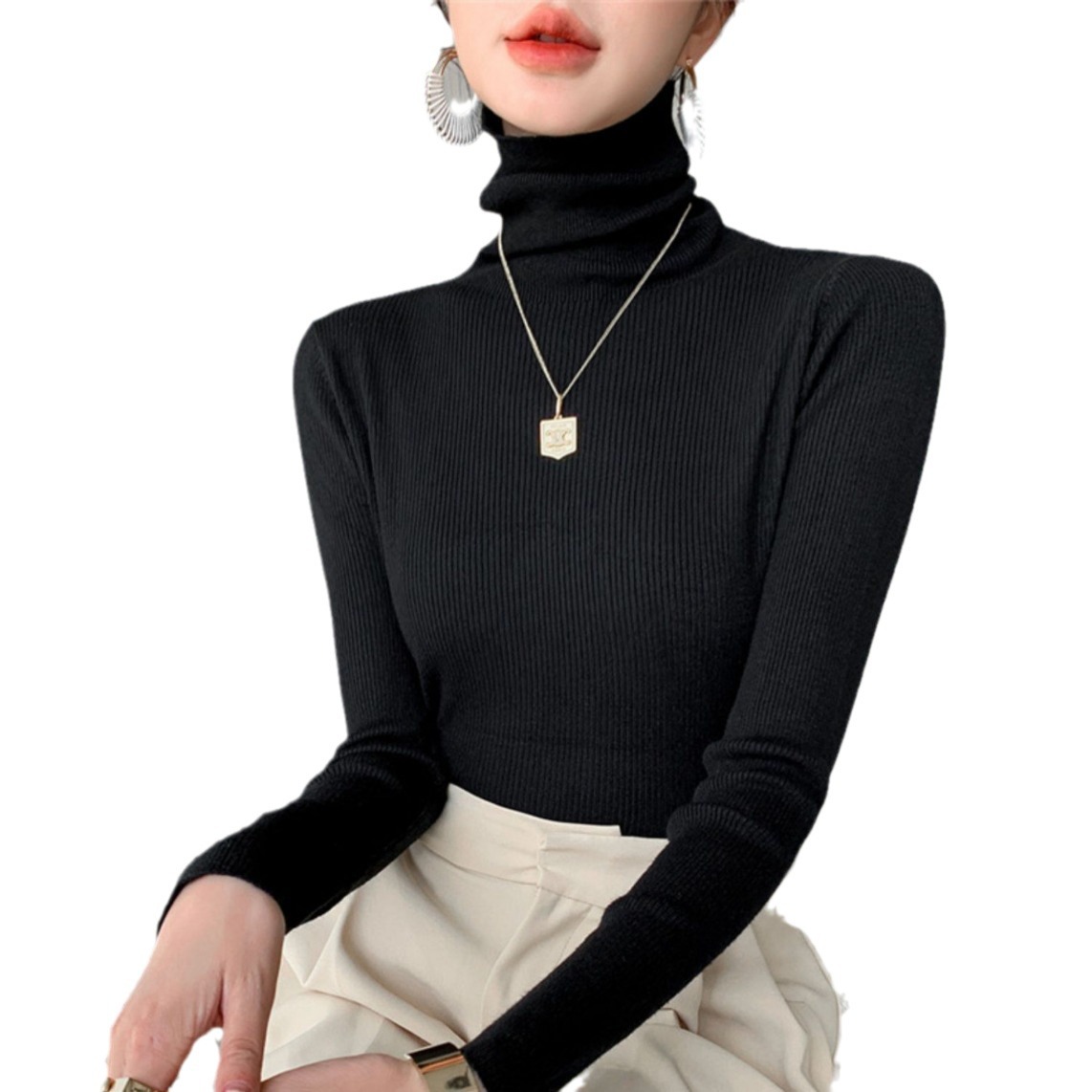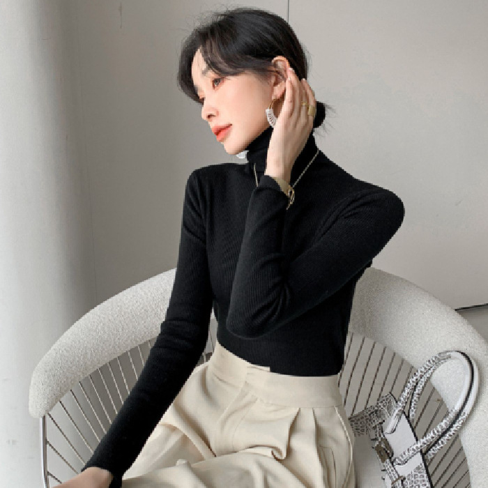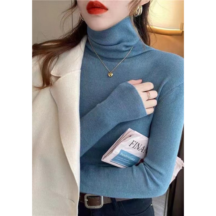 Главная страница > Осенний Новый женский синий свитер Klein с ворсистым воротником, нижняя рубашка, водолазка, свитер, облегающий тонкий внутренний верх