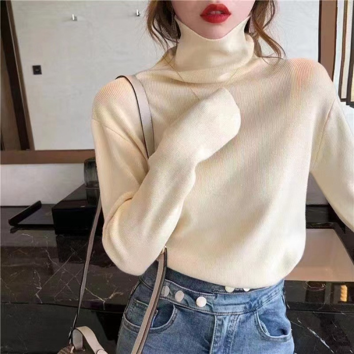Осенний Новый женский синий свитер Klein с ворсистым воротником, нижняя рубашка, водолазка, свитер, облегающий тонкий внутренний верх
