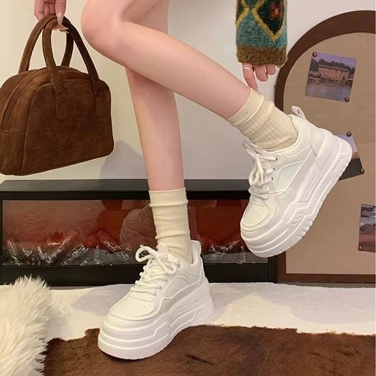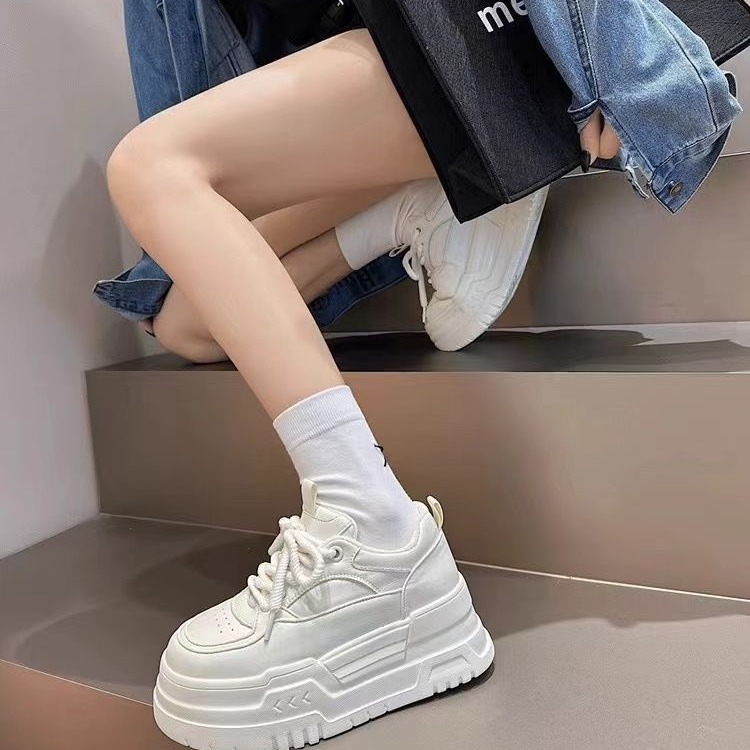 Главная страница > Женские белые кроссовки на толстой подошве, универсальные под юбки, на платформе, для весны и осени 2025 года, новые повседневные кроссовки в гонконгском стиле, увеличивающие рост.