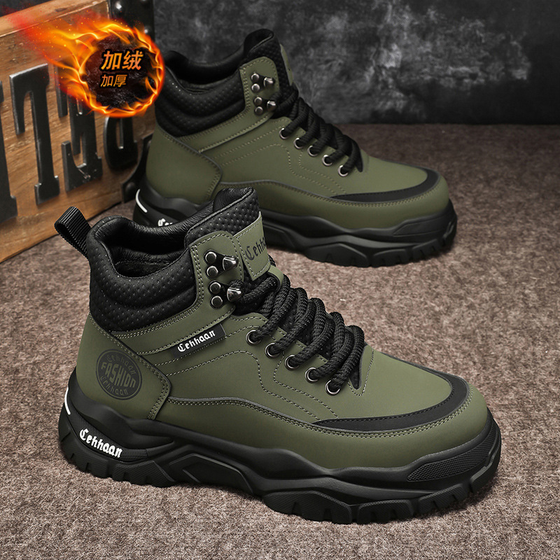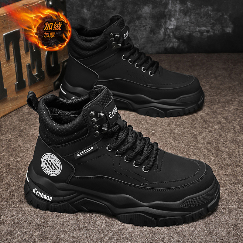 Главная страница > Высокие мужские туфли зимой толстые и толстые английские сапоги ревеня толстая подошва нескользящие водонепроницаемые оснастки Martin сапоги теплые хлопчатобумажные туфли