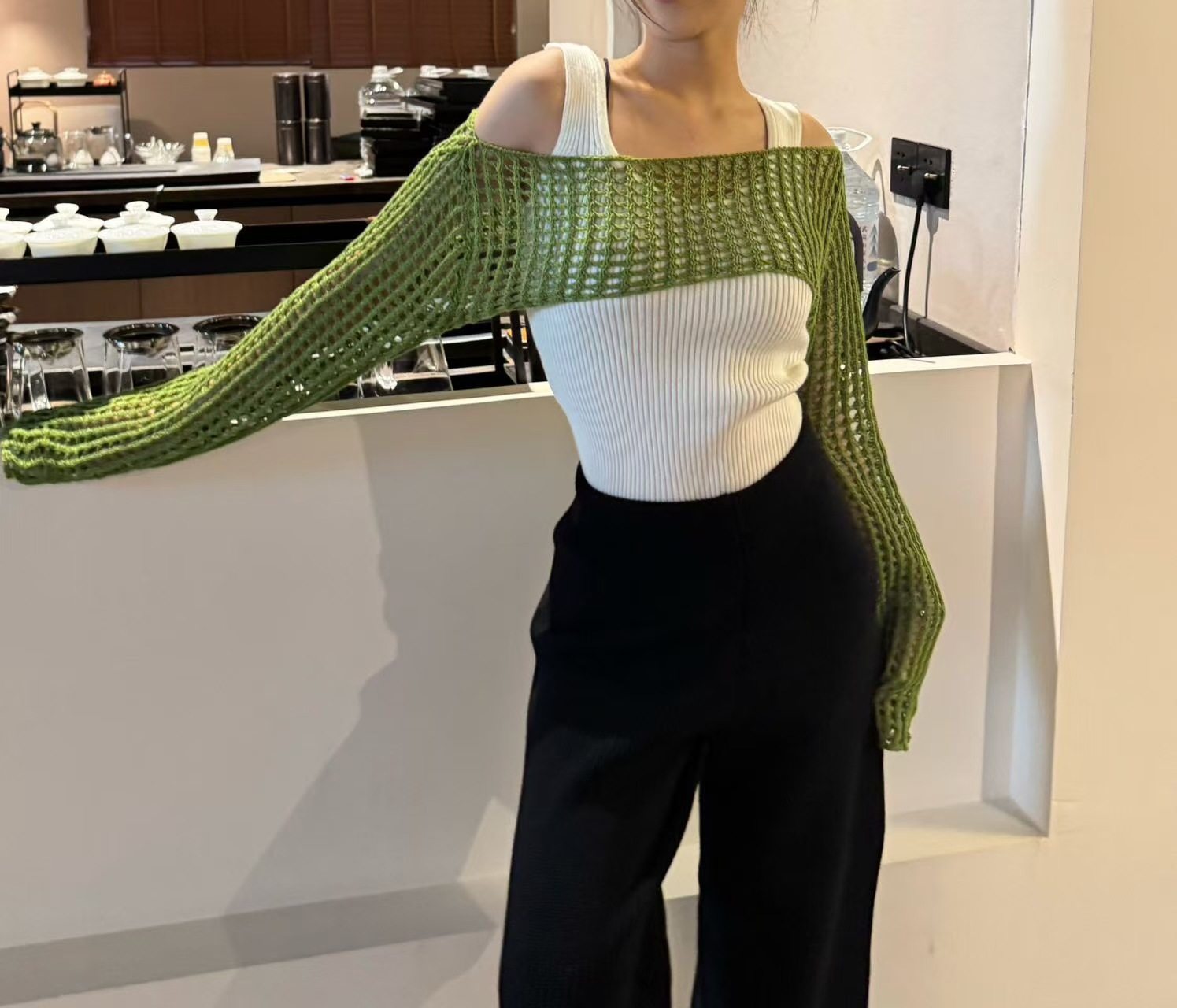 Главная страница > Новая сексуальная блузка в европейском и американском стиле с вырезами, однотонная, с длинными рукавами, трикотажная, ультракороткая, для трансграничной торговли на Amazon.