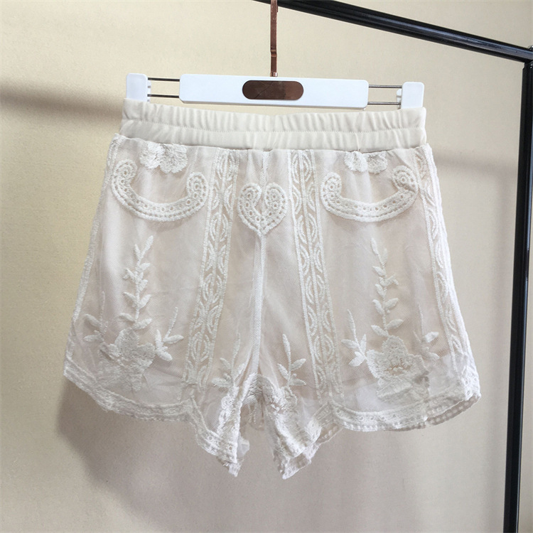 Главная страница > Кружевные вышитые трикотажные полые свободные шорты, брюки с защитой от света, женская верхняя одежда, шорты, новый стиль