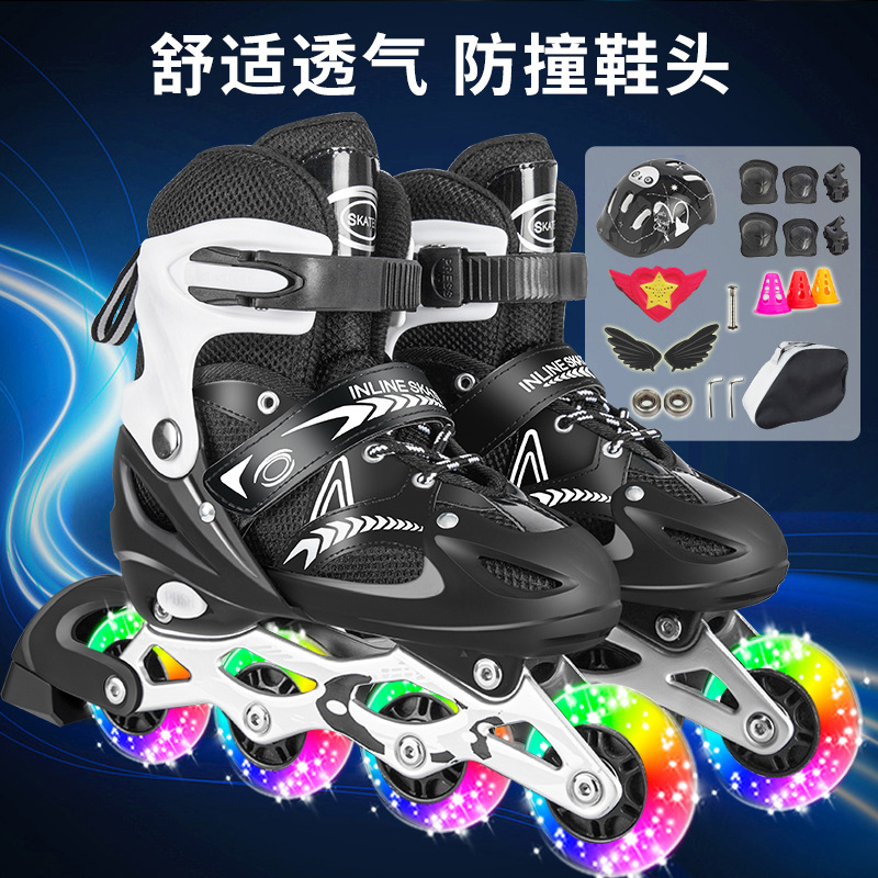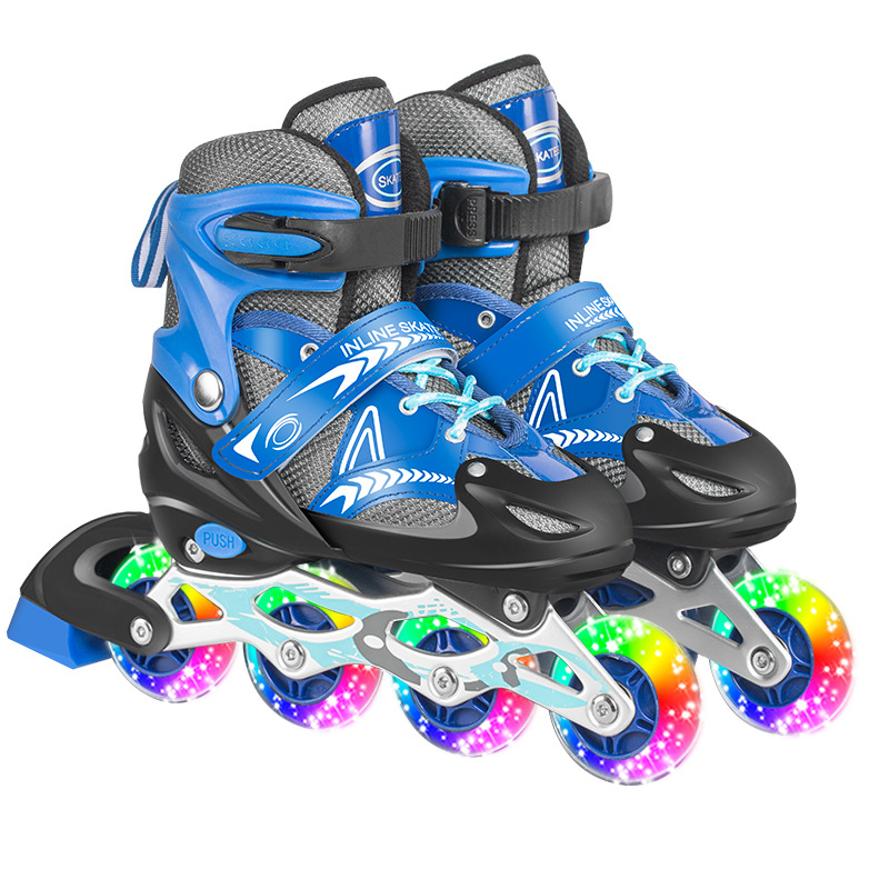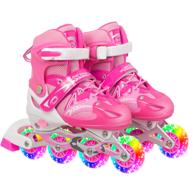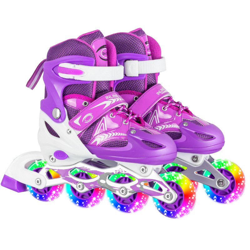Главная страница > Заводские прямые роликовые коньки, детские роликовые коньки для мальчиков и девочек, роликовые коньки из ПВХ с полной вспышкой, регулируемые поколение волос