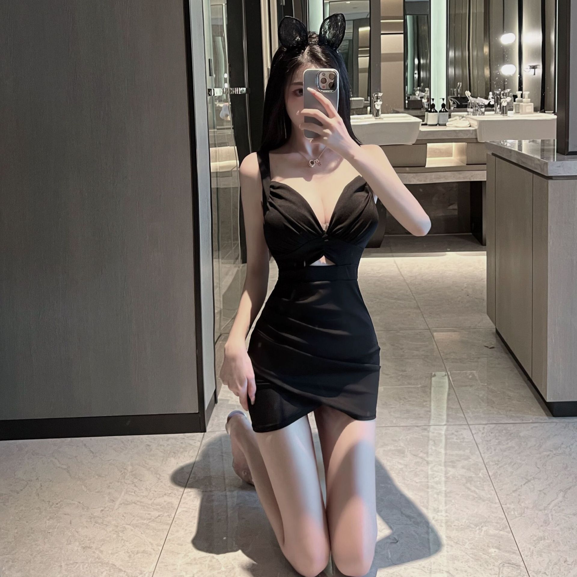 Главная страница > Летняя сексуальная юбка-слип для девочек Spice Little Man с открытыми плечами, перекрестным V-образным вырезом, узкое полое платье с нерегулярным бедром