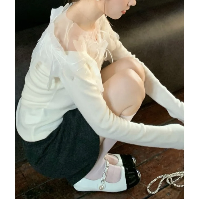 Jinqian Xiaxiangfeng Pure перья топ женский весенний и осенний новый нижний свитер с длинными рукавами и свитер