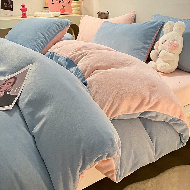 Молочно-белый + детский синий [двусторонний плюс бархат, приятный для кожи и теплый]