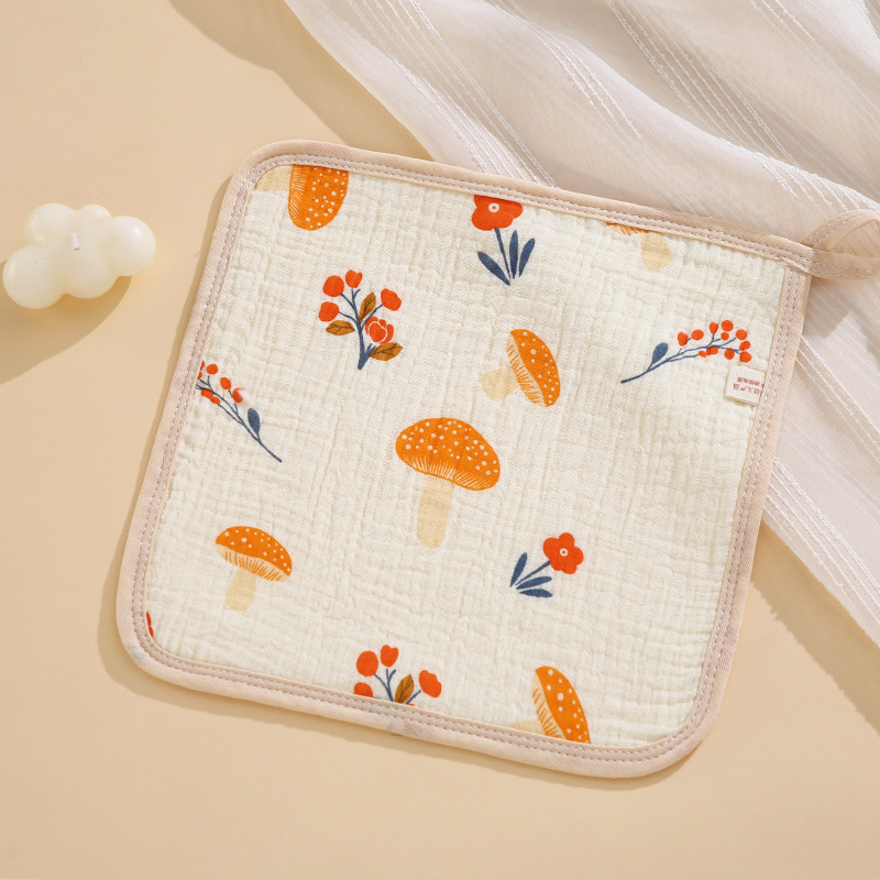 Четырехслойный квадратный шарф [Маленький мишка грибничка]