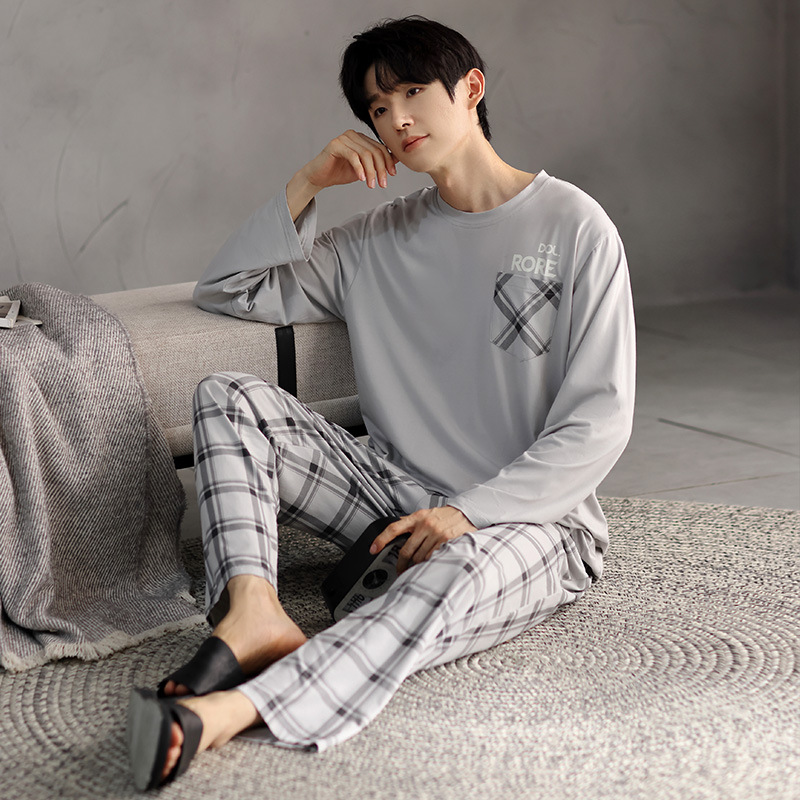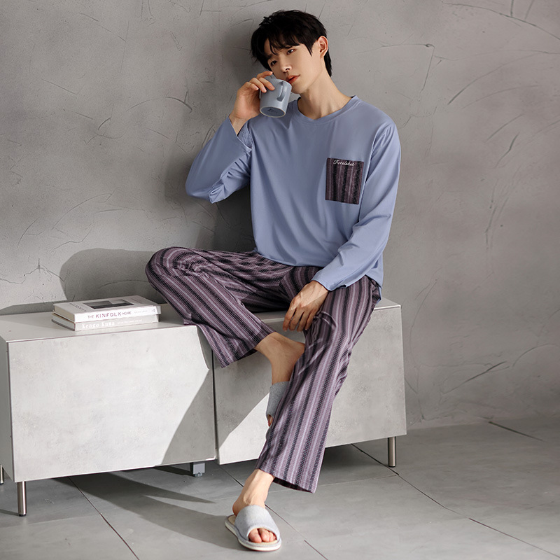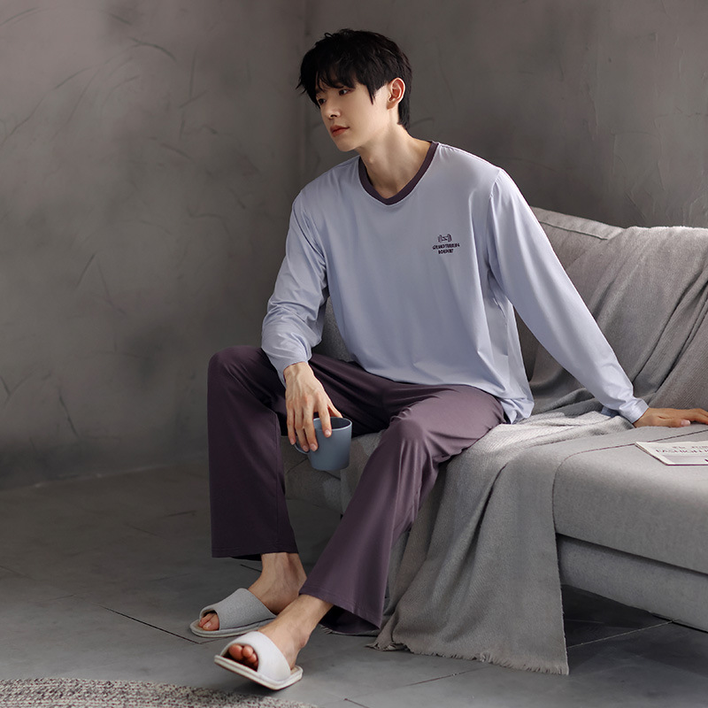 Главная страница > Пижама Мужская весна и осень Модаль с длинными рукавами тонкий рукава может носить на улице 2025 новый простой набор домашней одежды