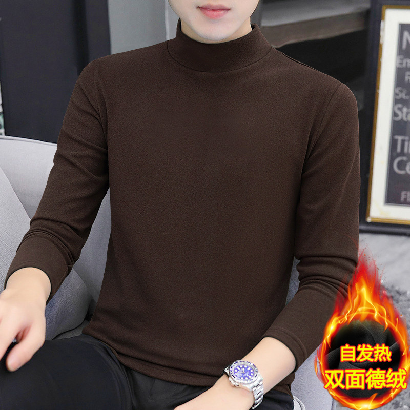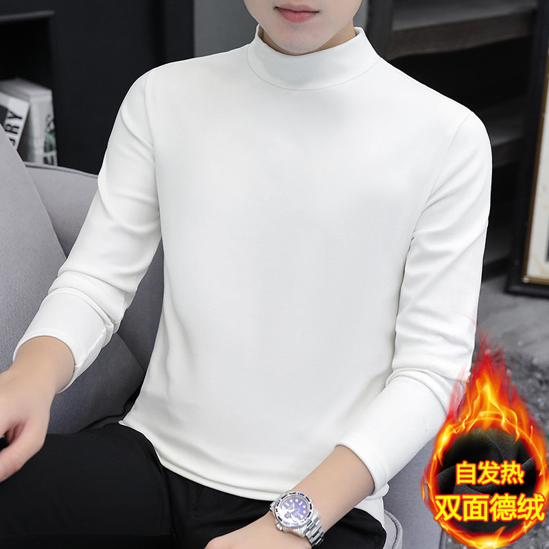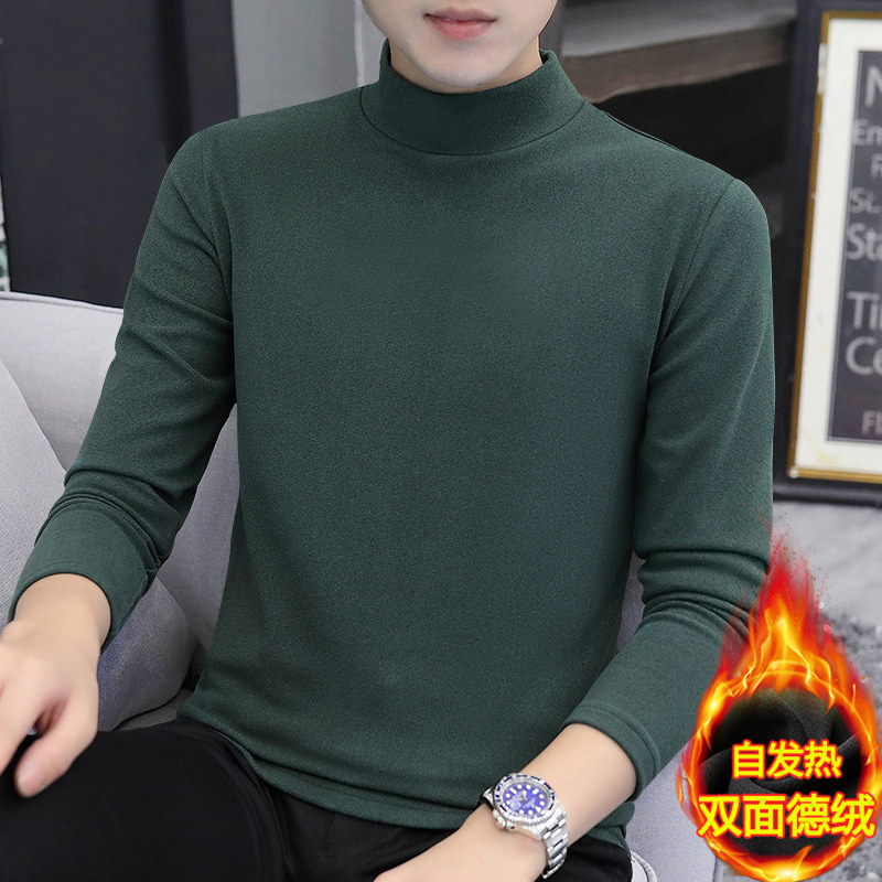 Главная страница > Двусторонняя рубашка Delong нижняя рубашка мужская половина высокого воротника осенняя одежда с бархатной футболкой с длинными рукавами осенью и зимой