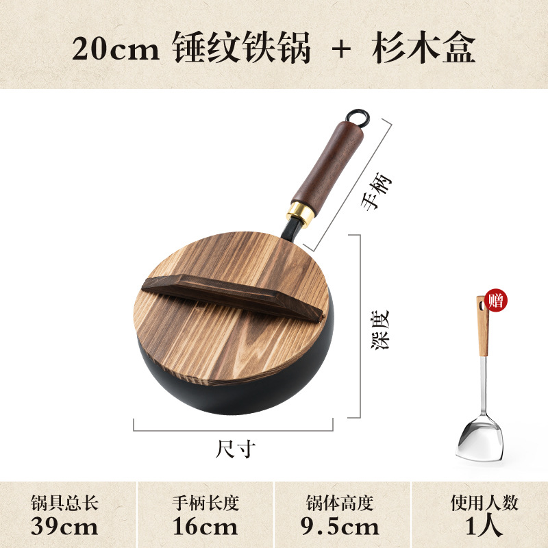 [Модернизированная модель с большим животом] Маленькая кастрюля с кованым мастером 20 см + закаленная крышка + железная лопата