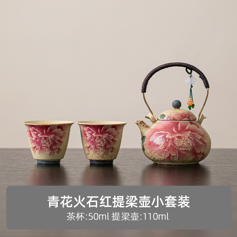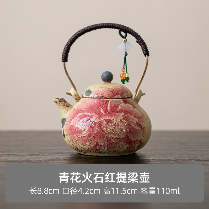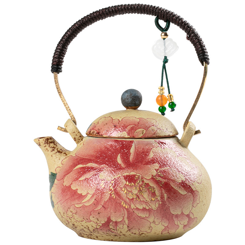 Главная страница > Огненный красный керамический чайник, старый винтажный пион, маленький одноличный чайник