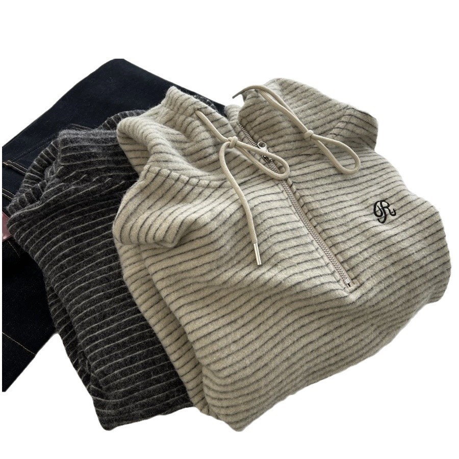 Весенний полузастежка-молния в полоску с капюшоном свитер корейская версия ретро нежная свободная тощая ленивая толстовка с капюшоном
