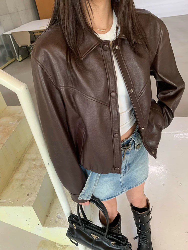 Короткое пальто из натуральной овчины растительного дубления «Старая улица Парижа», осень 2025 года, для миниатюрных женщин.