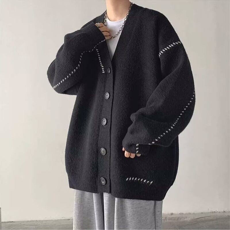 Главная страница > Свитер мужской осенний и зимний кардиган корейский свободный свитер с v-вырезом теплый дизайн повседневный свитер