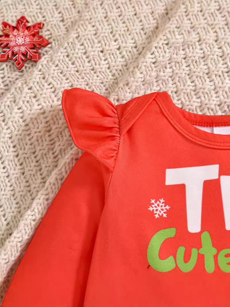 Девочка милая рождественская вечеринка одеваются буквенные принты с длинными рукавами и шерстяными расклешенными брюками шляпа из трех частей