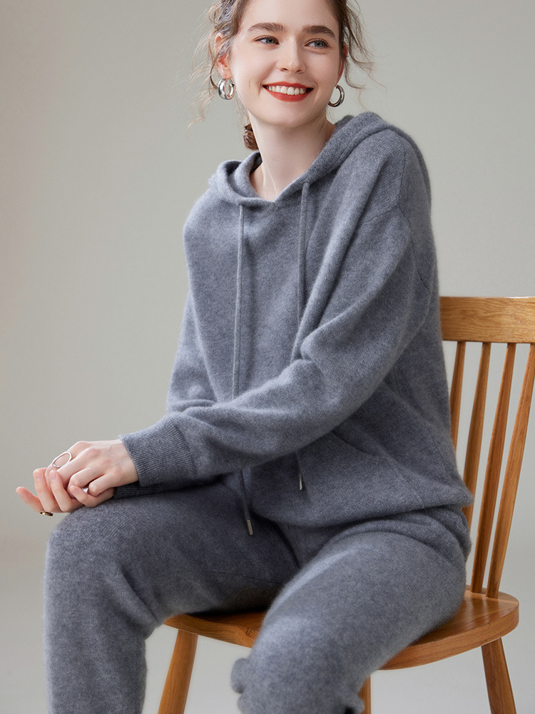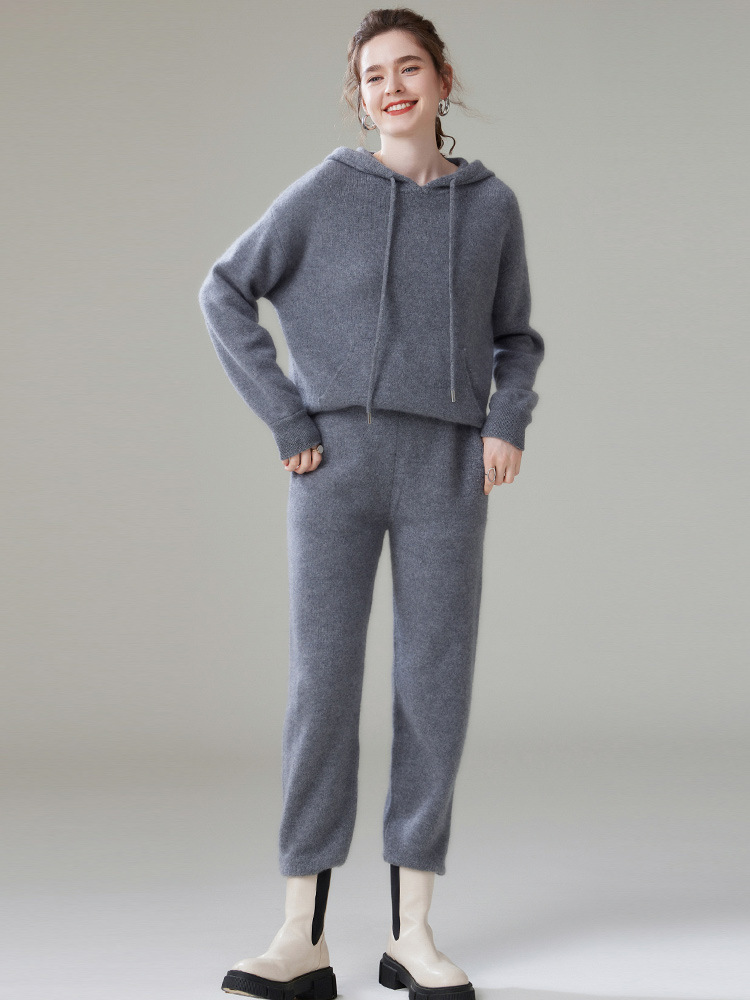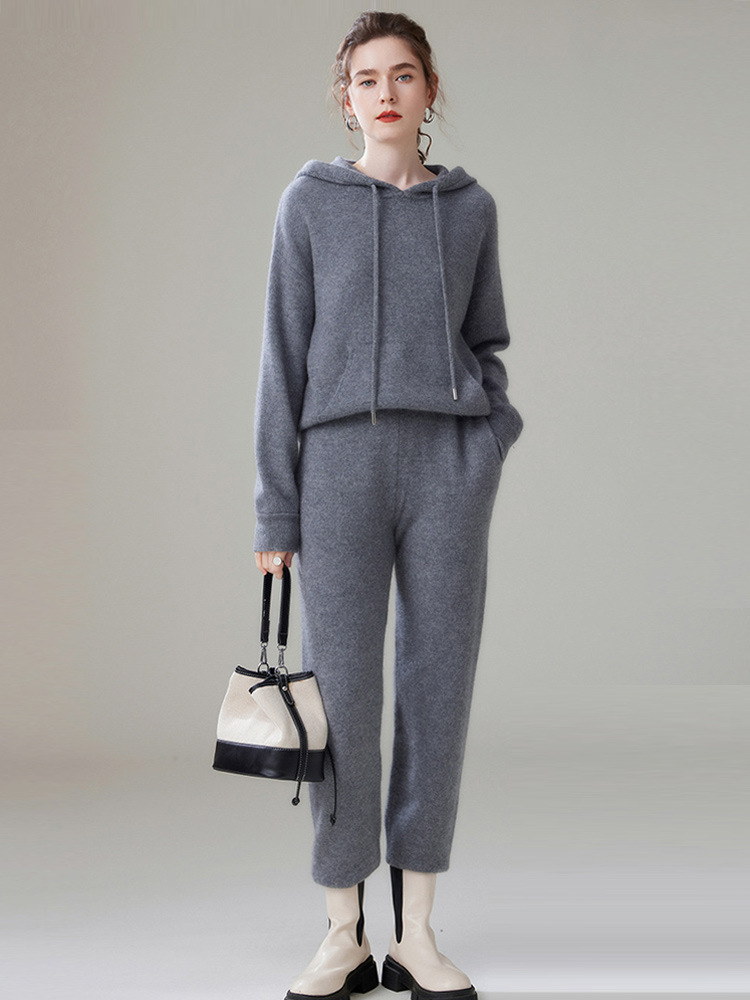 Главная страница > 2024 осень и зима новый стиль женский свитер повседневный кашемировый набор с высокой талией шнур с карманом спортивные трикотажные брюки набор