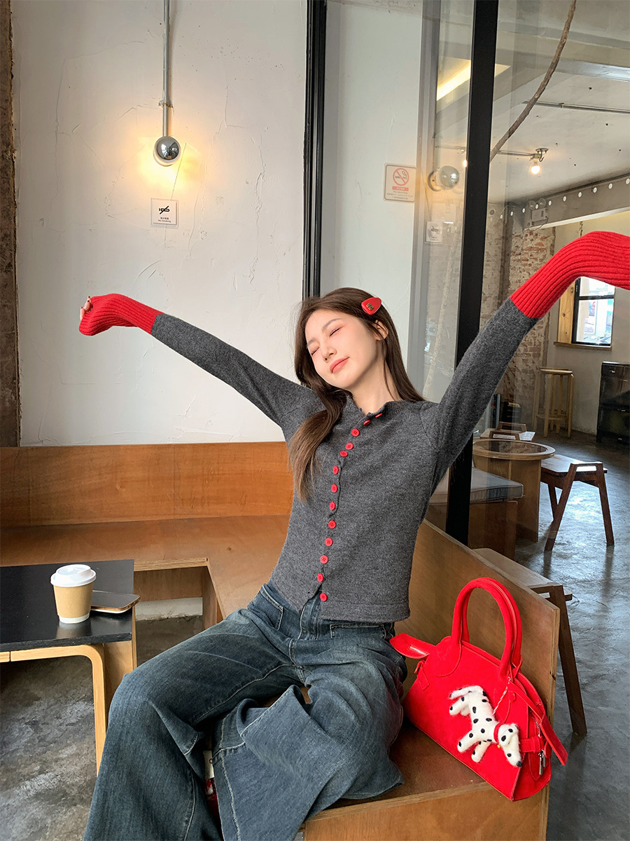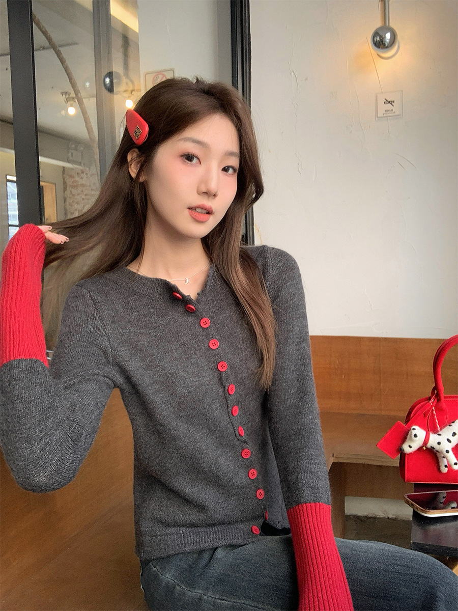 Главная страница > Шикарный цвет контрастный дизайн трикотажный кардиган куртка женская осень-зима новый сладкий тонкий тонкий с длинными рукавами нишевые топ
