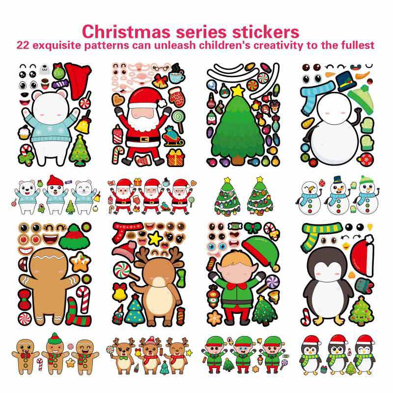 Рождественские наклейки для детей в классе Рождественская вечеринка Подарки Рождественские поделки Сделайте свою собственную рождественскую наклейку