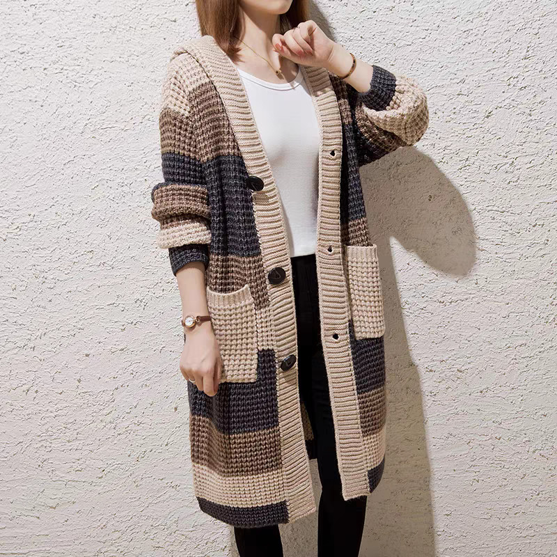 Главная страница > Женский свободный тёплый кардиган из толстой шерсти средней длины с капюшоном, весна 2025, новый свитер-жакет