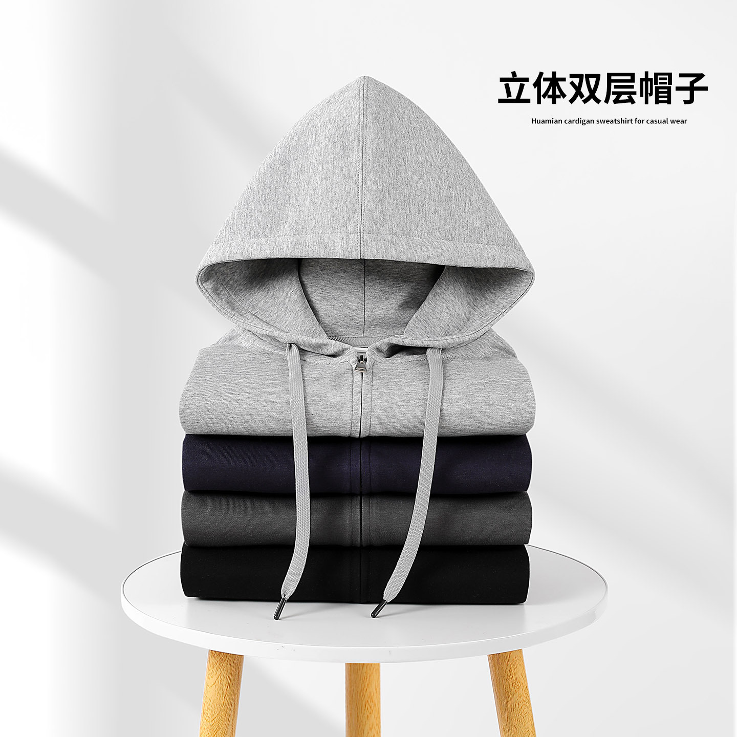 Главная страница > Мужская толстовка-кардиган из хлопка 320 с капюшоном на молнии, спортивная повседневная однотонная с двойным капюшоном, в европейском и американском стиле, модная уличная куртка