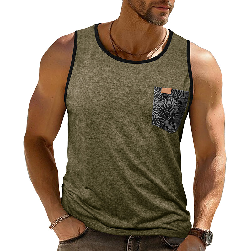 2025 Летний новый трансграничный европейский и американский мужской без рукавов жилет с принтом внешней торговли свободный карманный фитнес спортивный топ