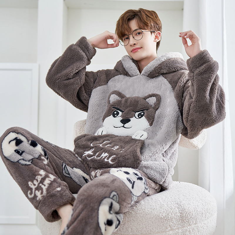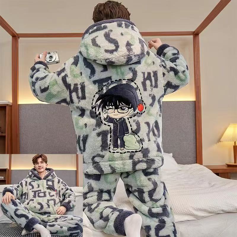 Главная страница > Мужская Пижама, осенне-зимняя Коралловая флисовая утолщенная фланелевая флисовая подкладка, домашняя одежда с героями мультфильмов, мужской зимний костюм