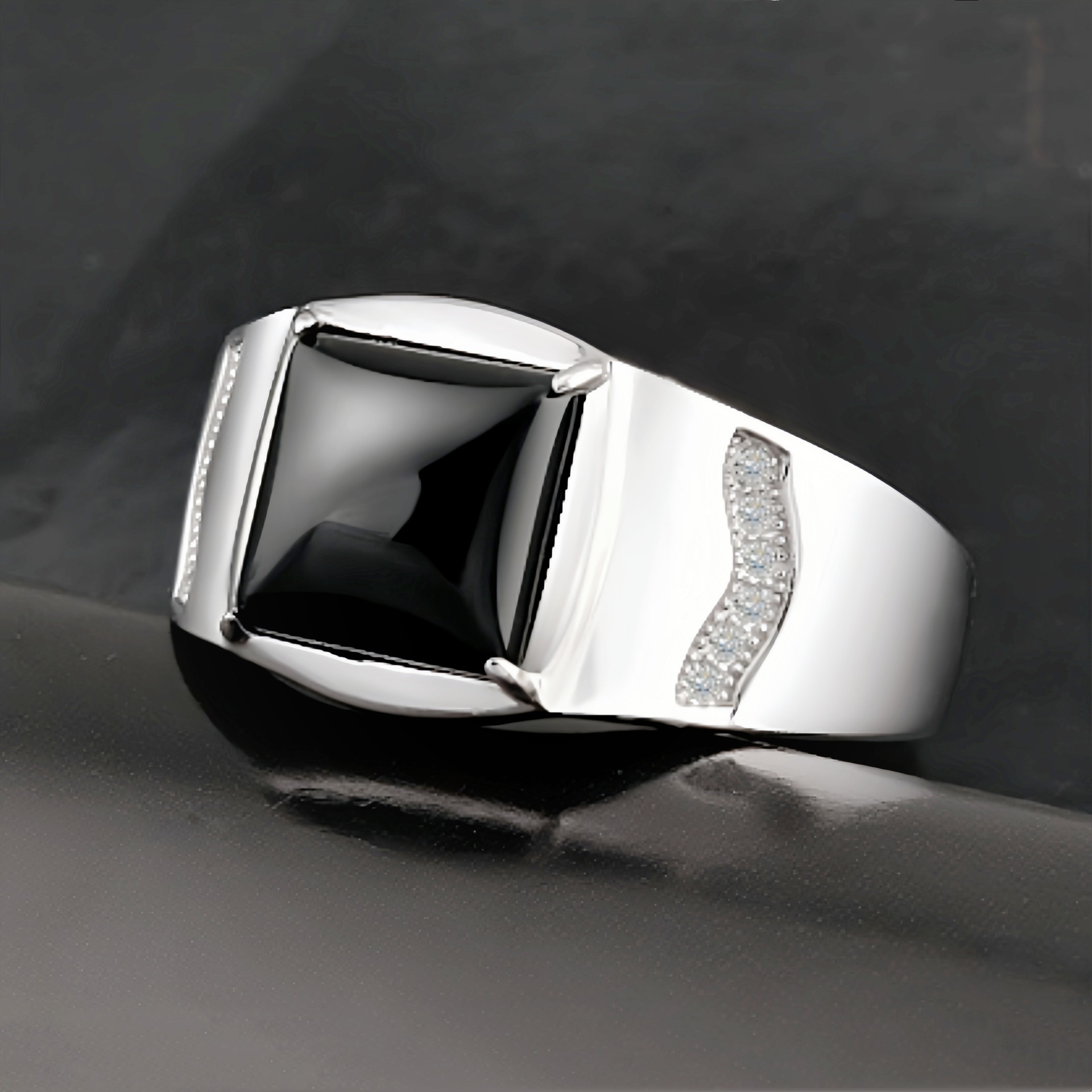 Главная страница > Тип мужского властного кольца Mahenao мужское кольцо отверстие можно регулировать корейскую версию глянцевого квадратного черного бриллианта