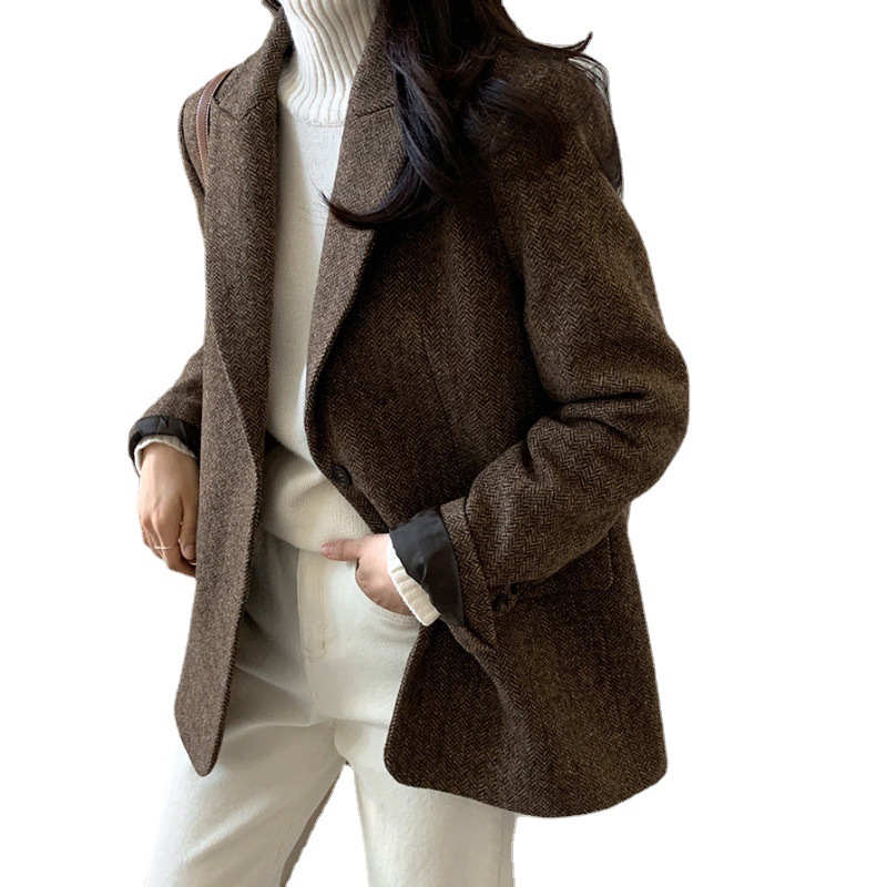 Главная страница > Южная Корея Dongdaemun агент по закупкам 2024 осень и зима новый однотонный подходящий ко всему шерстяной пиджак для женщин