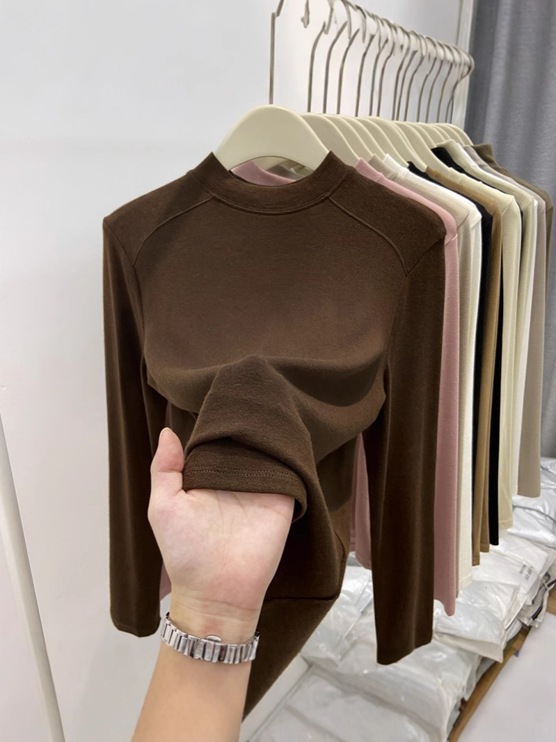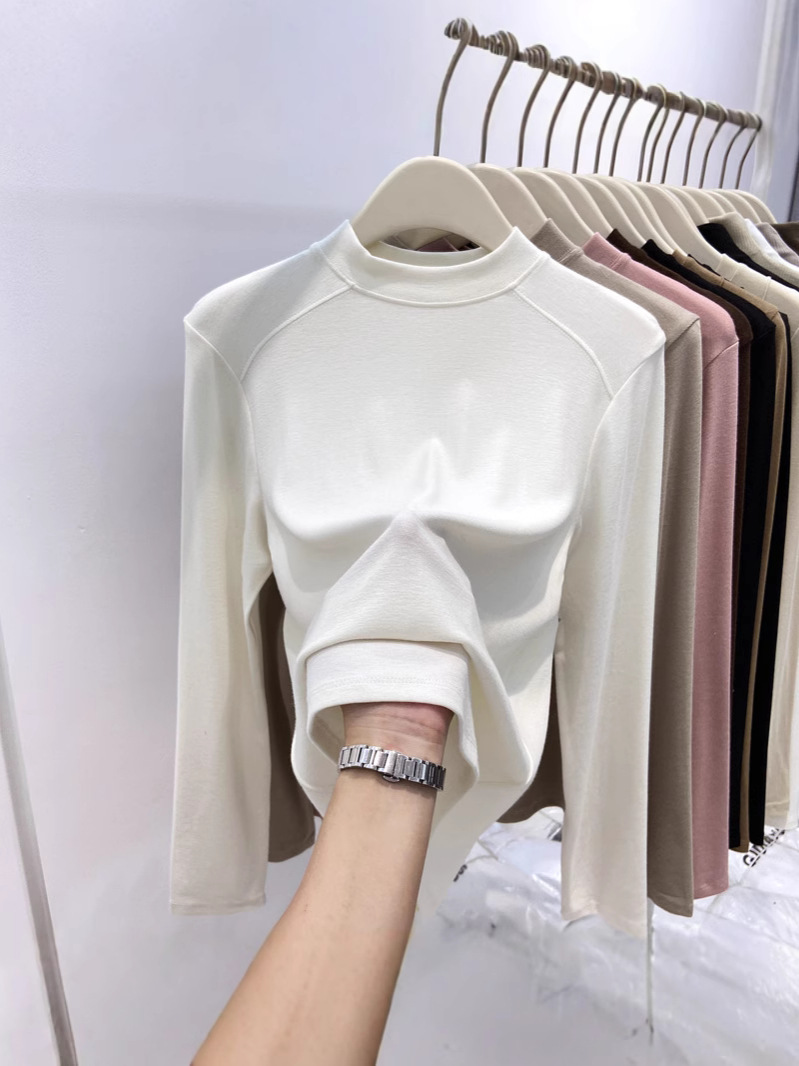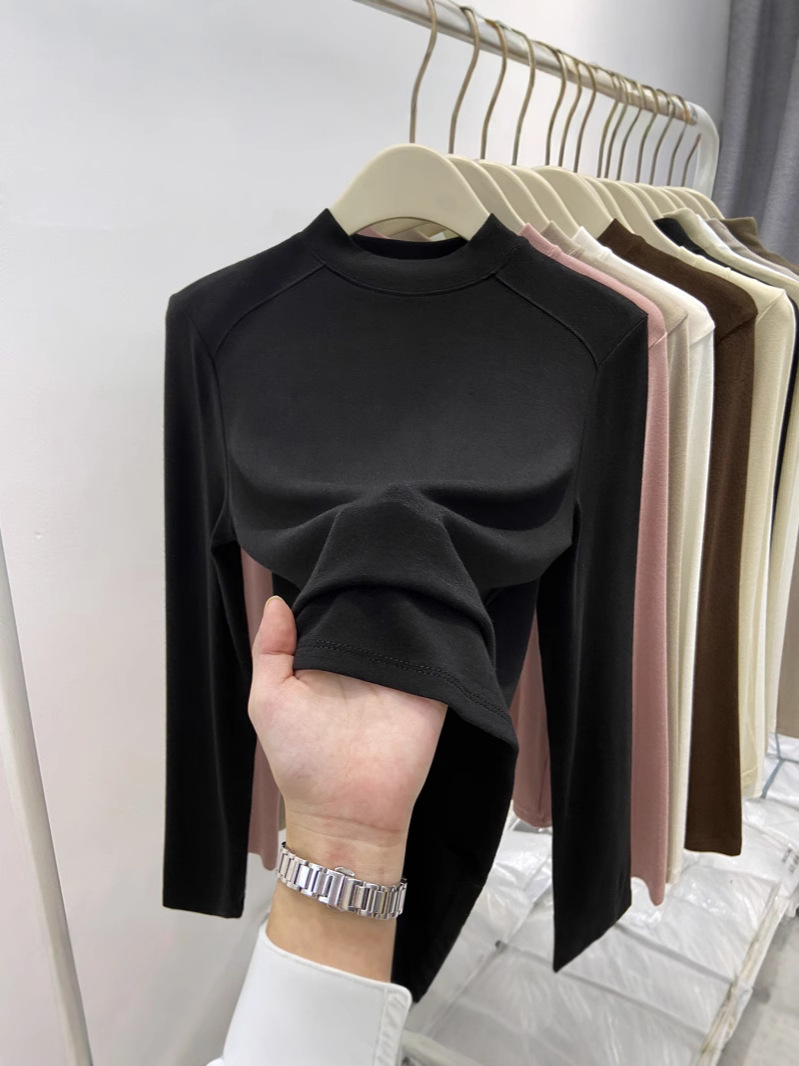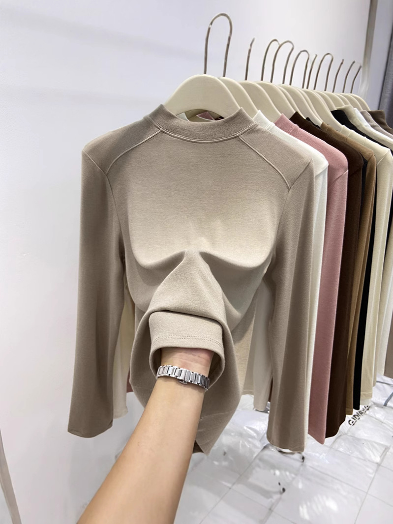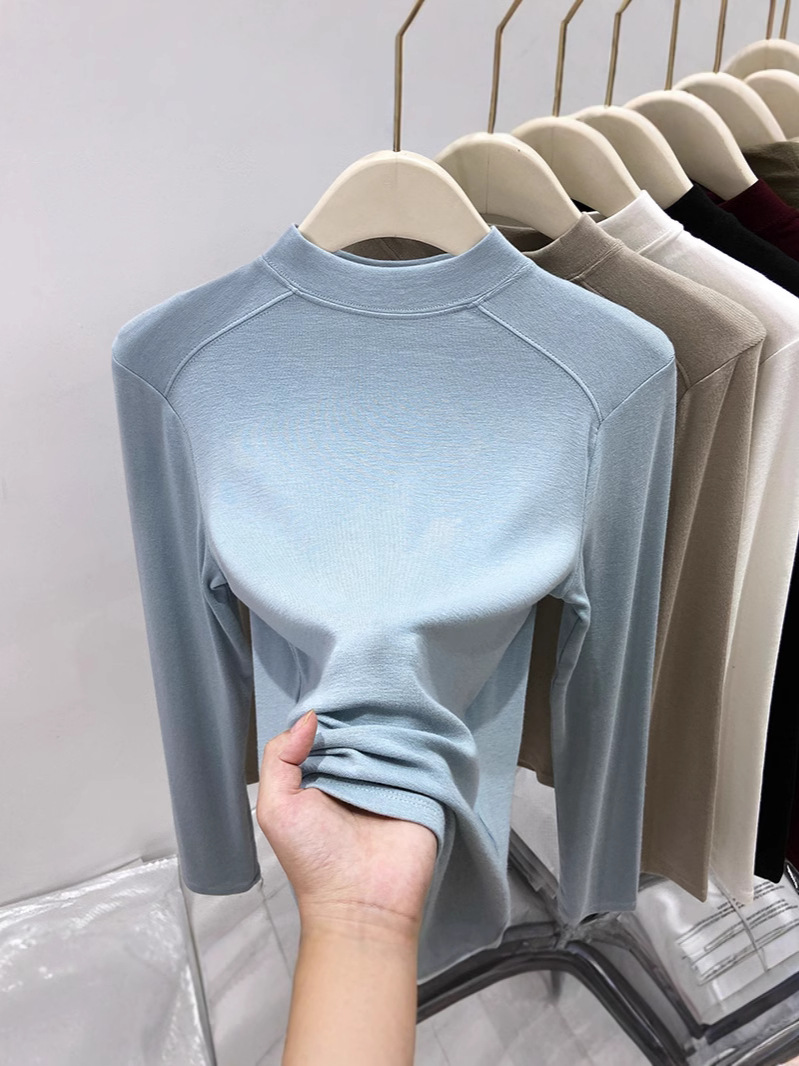 Главная страница > Нижняя рубашка Delong, женская осень-зима, новый полувысокий воротник, чтобы согреться внутри, можно носить футболку с длинными рукавами, чтобы показать тонкий топ