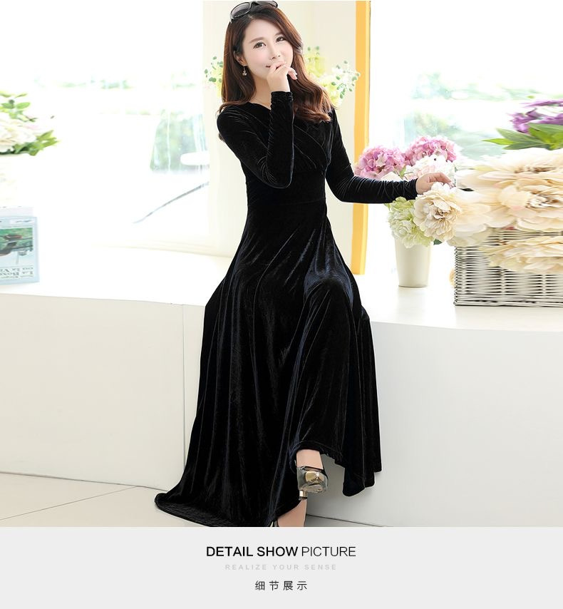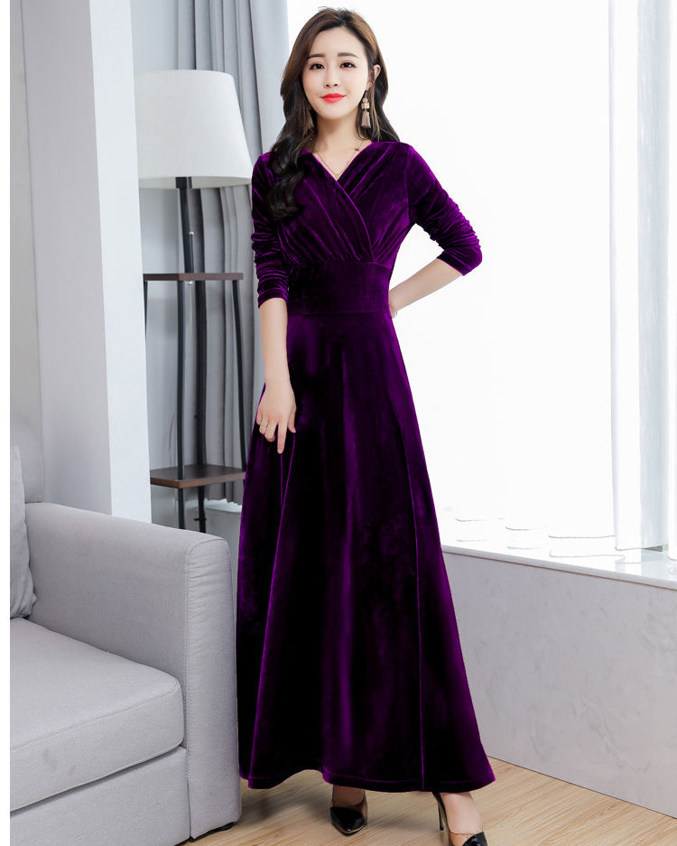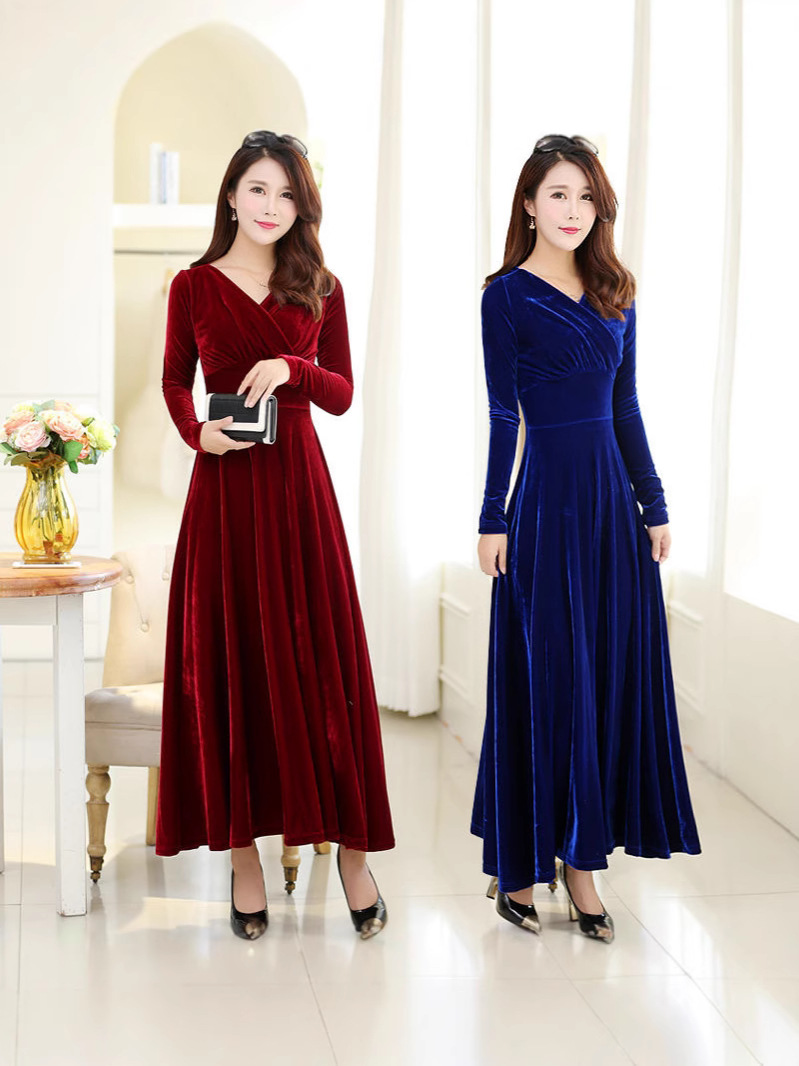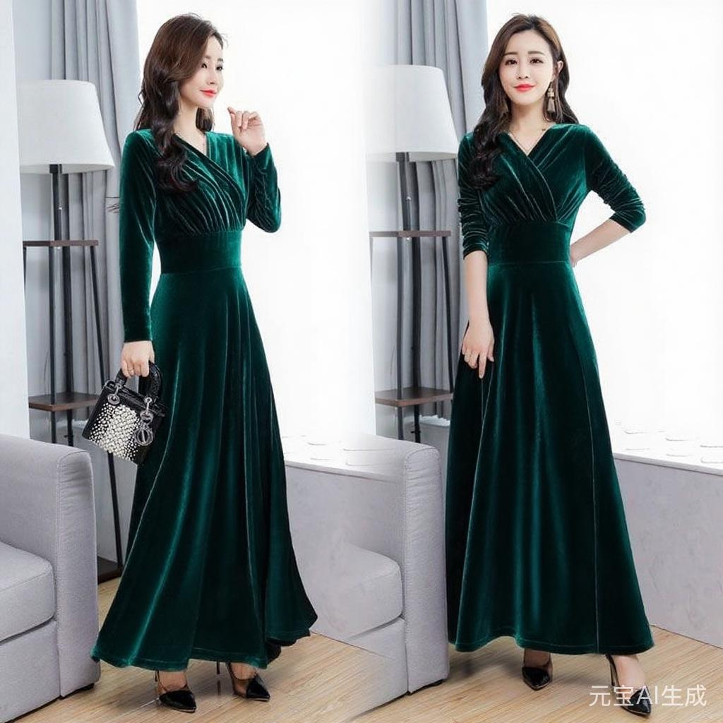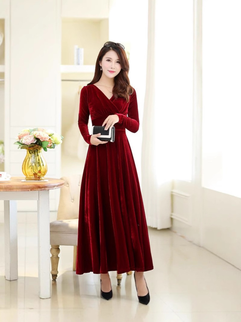 Главная страница > Новинка осени-зимы 2025: бархатное платье большого размера с длинным рукавом, расклешенное, с V-образным вырезом, для международной торговли