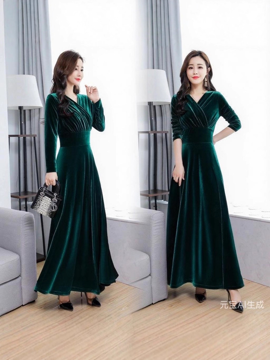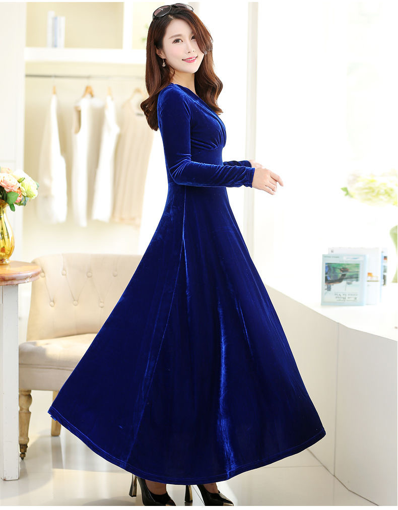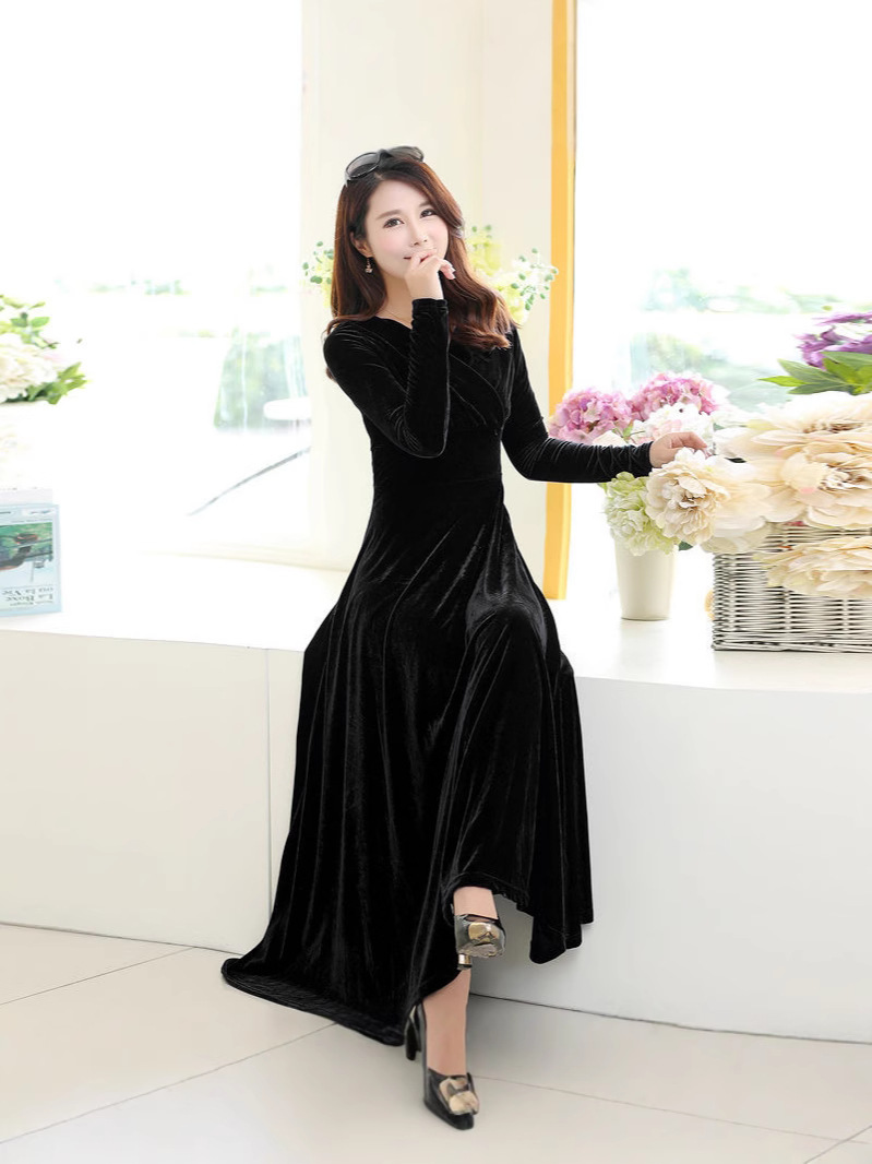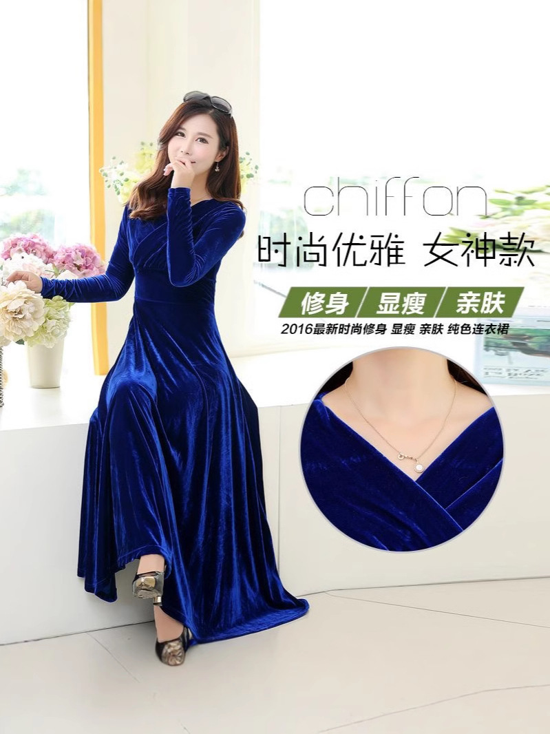 Главная страница > Новинка осени-зимы 2025: бархатное платье большого размера с длинным рукавом, расклешенное, с V-образным вырезом, для международной торговли