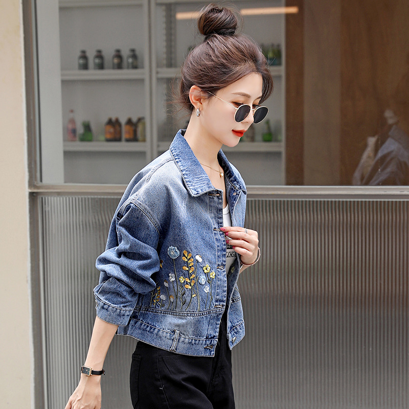 Главная страница > Джинсовое короткое пальто с вышивкой, женская одежда 2023, весна и осень, новая мода, корейское джинсовое пальто для девочек, куртка с длинным рукавом