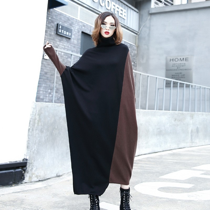 Главная страница > Женское трикотажное платье-свитер с высоким воротом в американском стиле в стиле ретро, с длинным свободным рукавом "летучая мышь", осенне-зимнее трикотажное платье