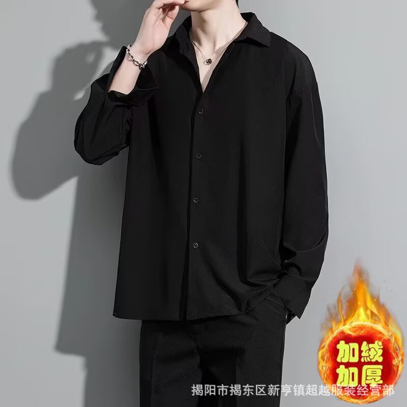 Главная страница > Черная мужская рубашка в одном стиле Бай Цзинтина и Санг Яна, высококачественная весенне-осенняя рубашка с длинными рукавами, подходящая в качестве внутреннего слоя для костюма или в сочетании с минималистичным пиджаком.