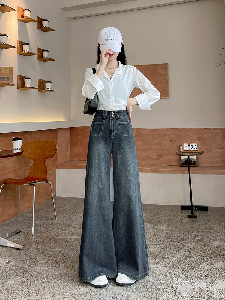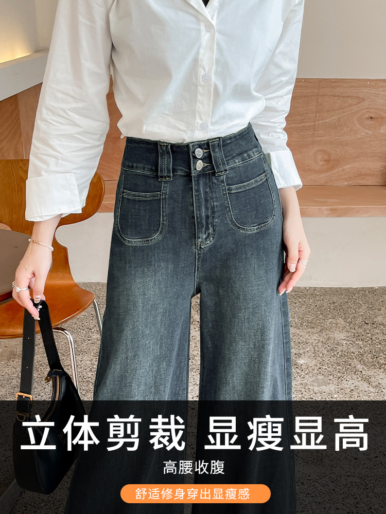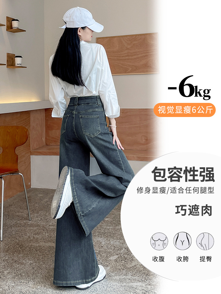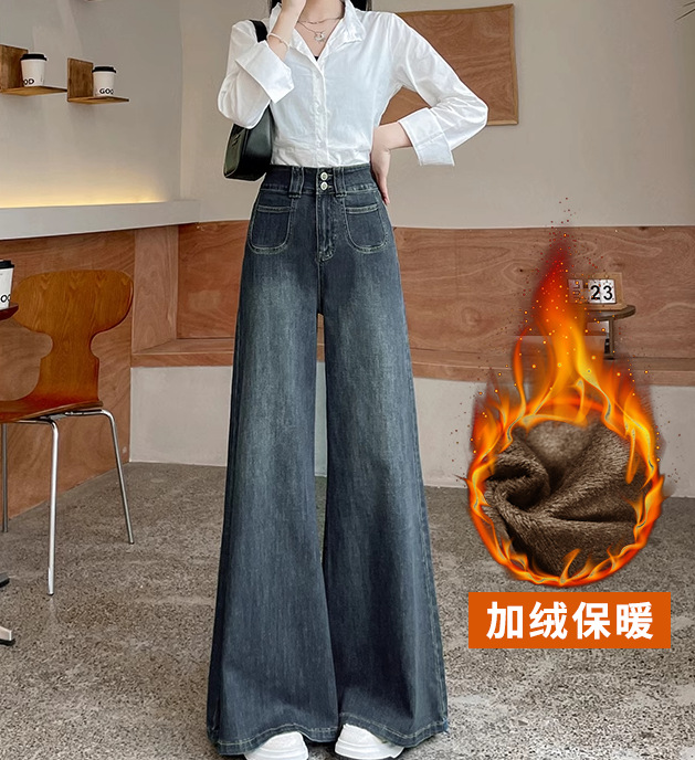 Главная страница > Высокая талия, широкие ножки плюс бархатные джинсы женские осень-зима 2025 новая тонкая слегка свободная прямая штаны