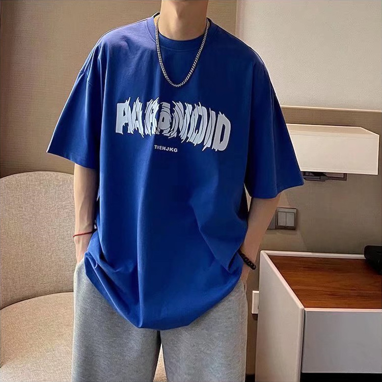 Главная страница > Хлопковая футболка с короткими рукавами мужская свободная гонконгская мода с круглым вырезом топ новая буква с полурукавом футболка одежда