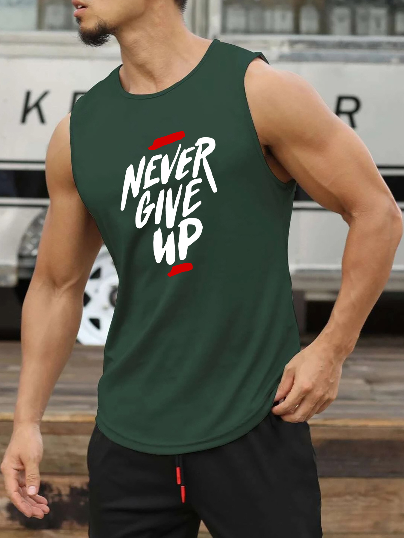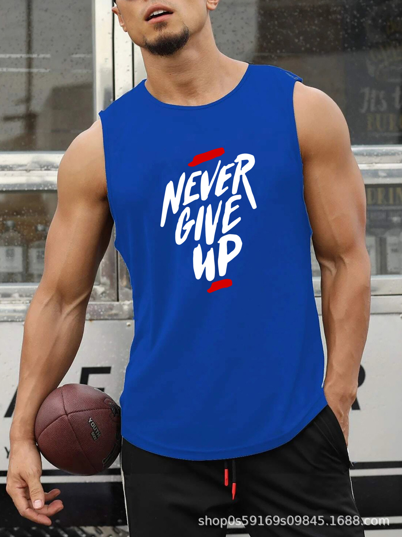 Главная страница > Летний хит продаж, популярный мужской жилет Nevergiveup с буквенным принтом и круглым вырезом для фитнеса, дышащий, впитывающий пот